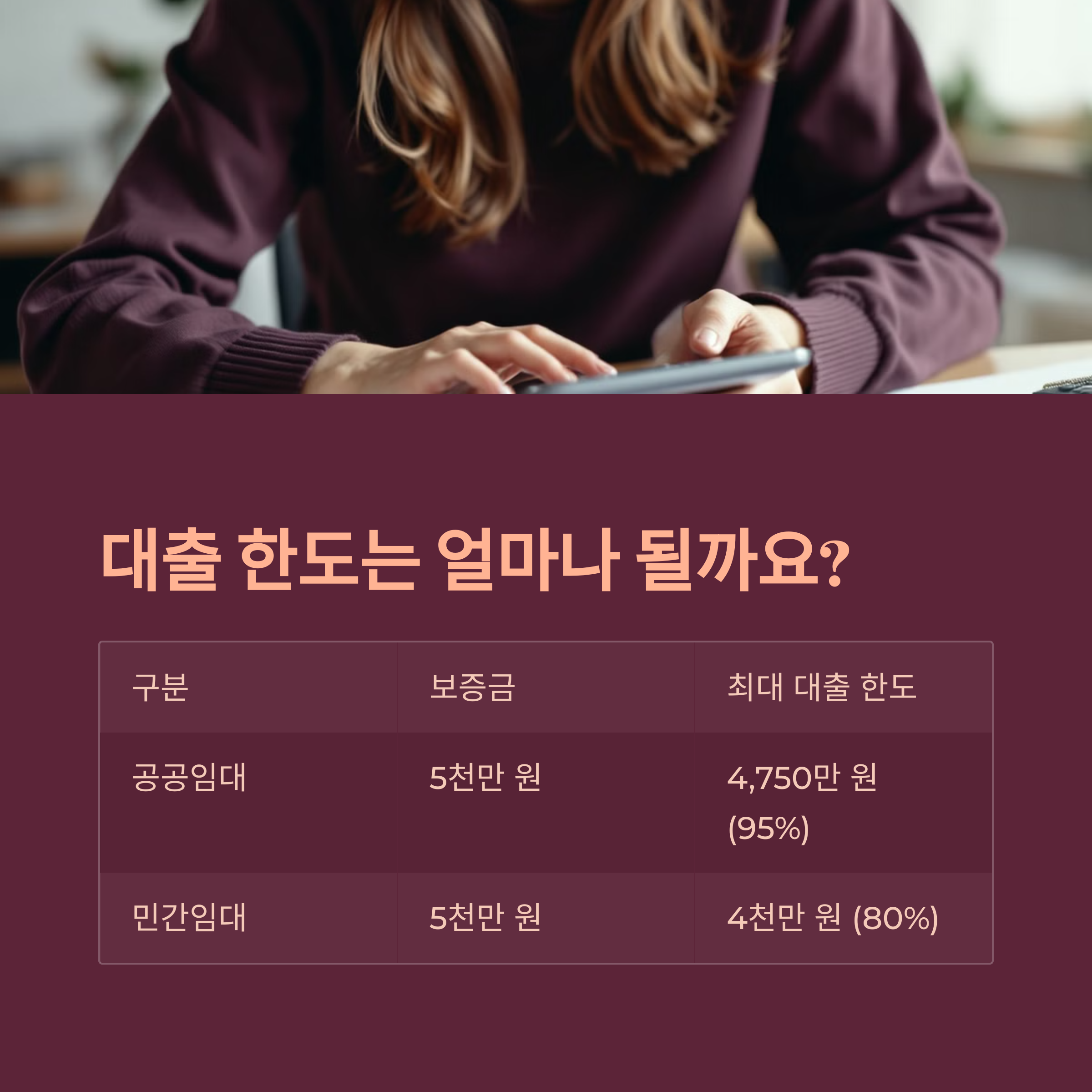 | 공공임대 | 5천만 원 | 최대 4,750만 원 (95%) |