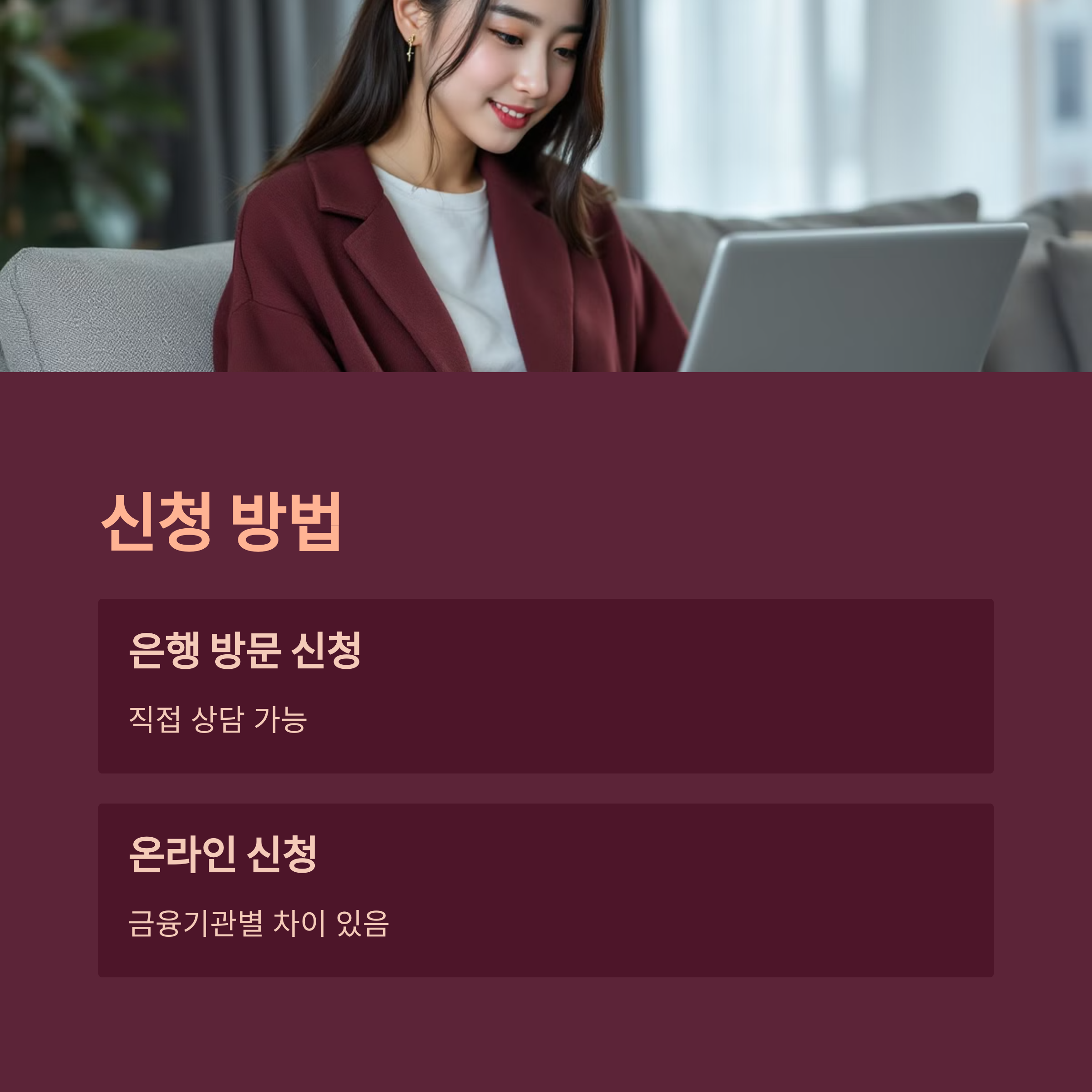 - 온라인 신청 가능 (금융기관별 차이 있음)