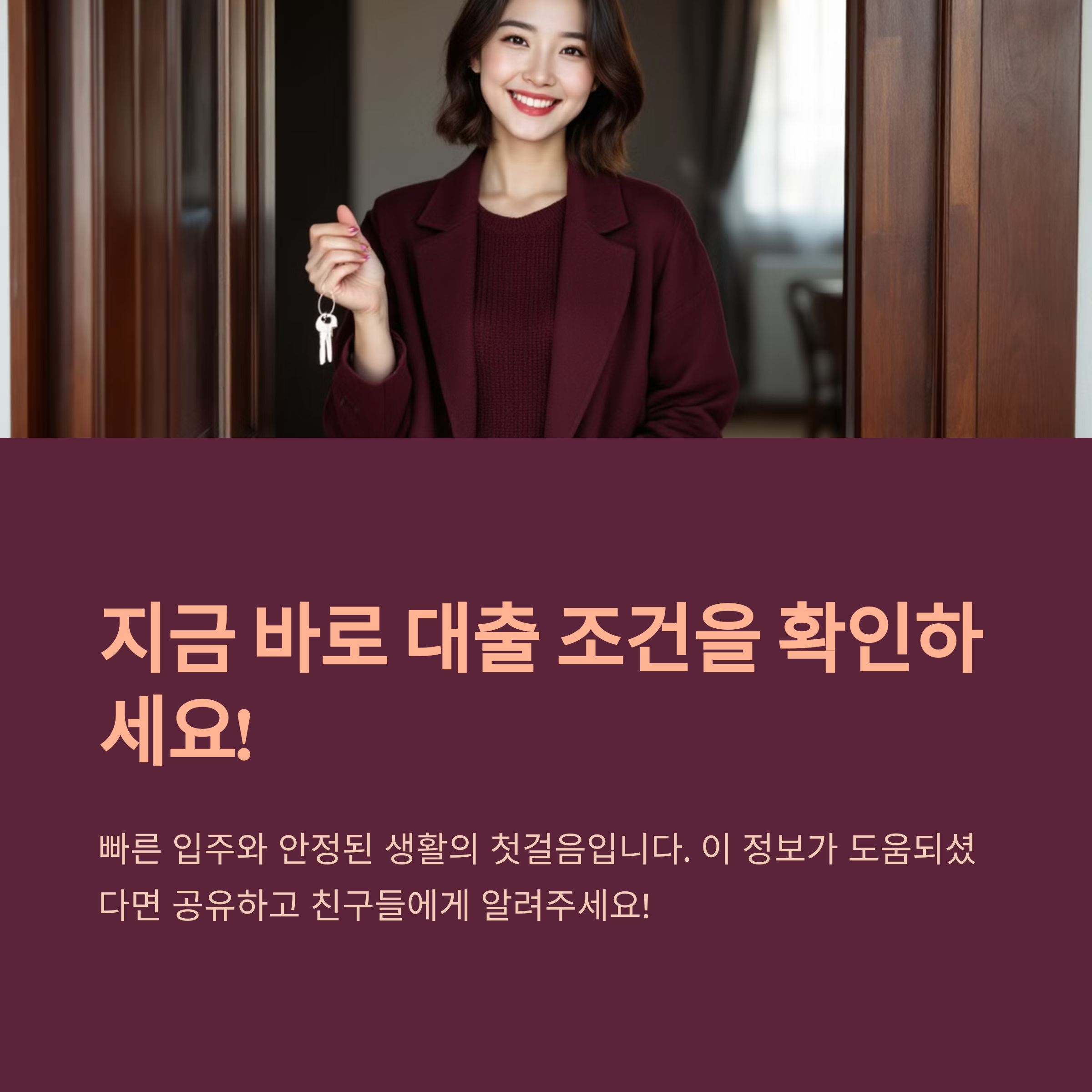 지금 바로, 자신에게 맞는 대출 조건을 확인해보세요. 빠른 입주와 안정된 생활의 첫걸음입니다!