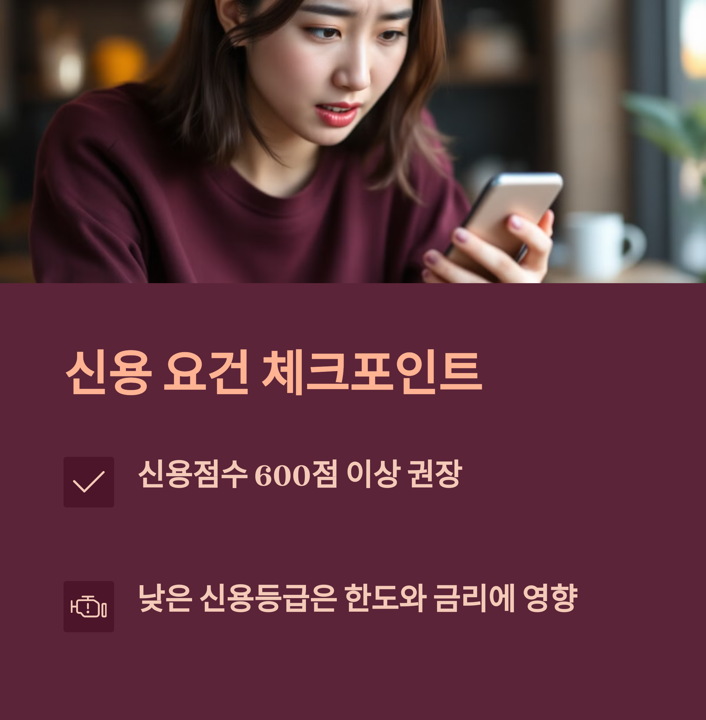 - 개인 신용등급이 낮을 경우, 대출 한도나 금리 변동 가능
