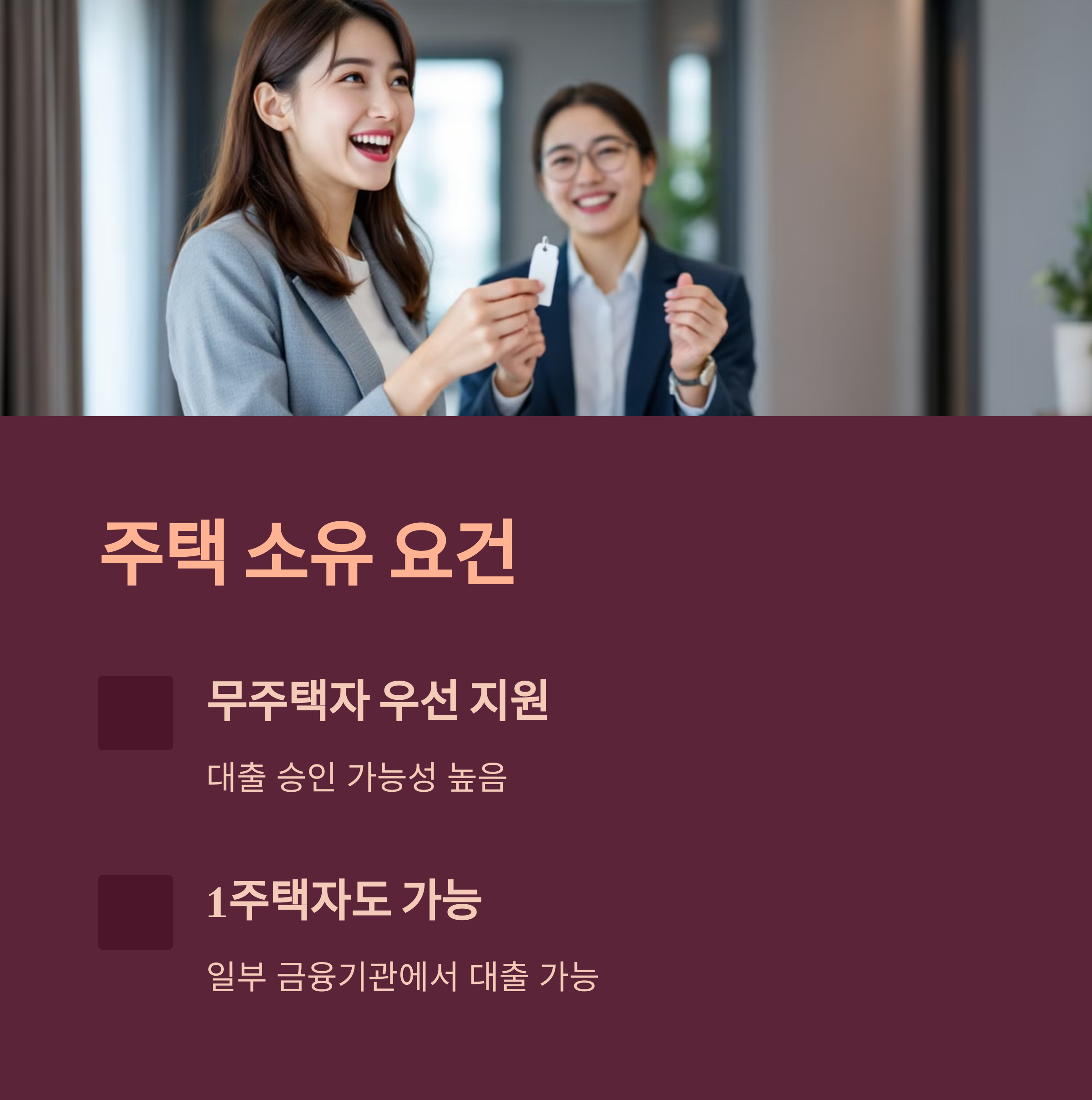 - 무주택자 또는 1주택자(일부 조건 충족 시 가능)