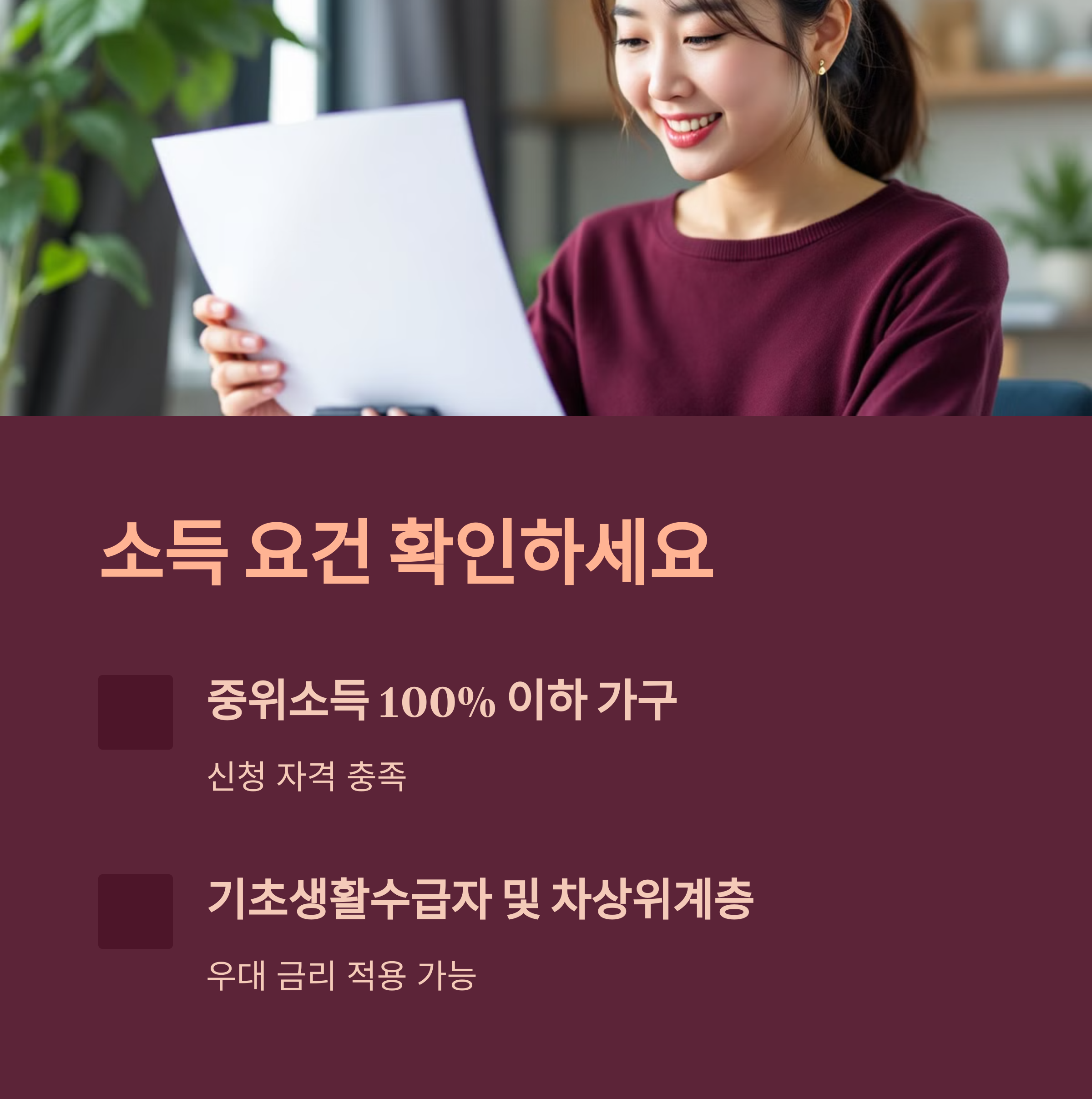 - 기초생활수급자 및 차상위계층 우대 금리 적용 가능