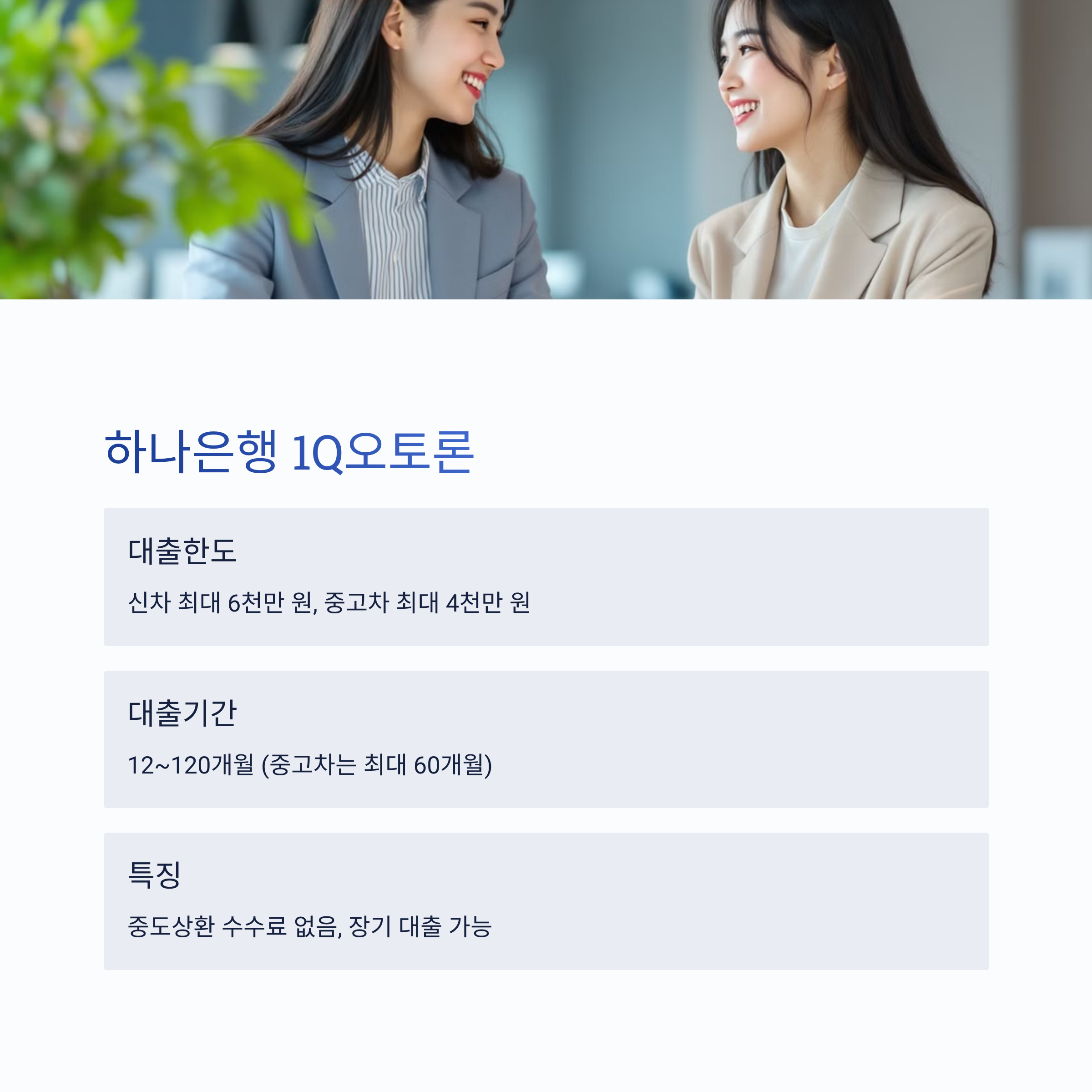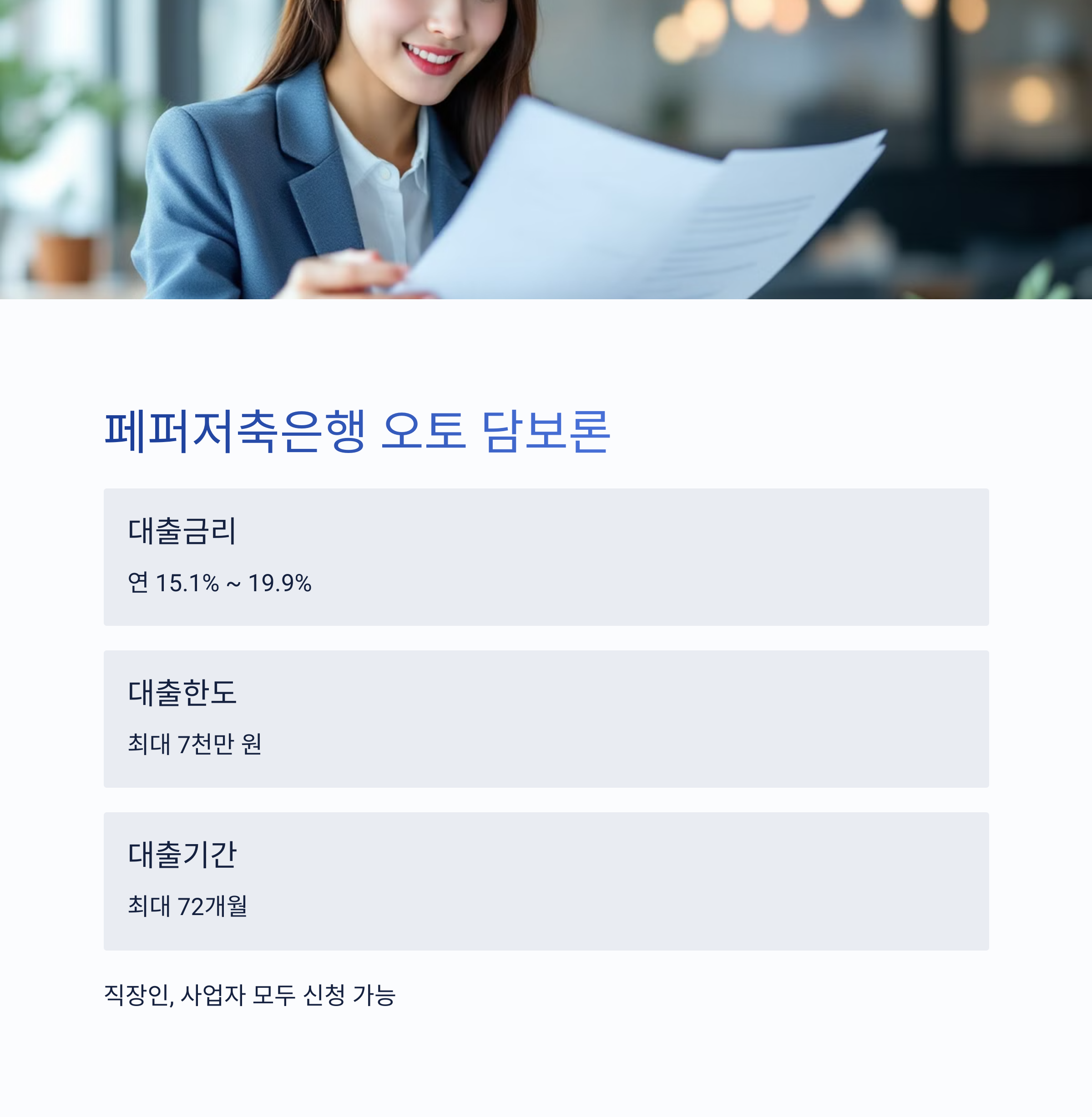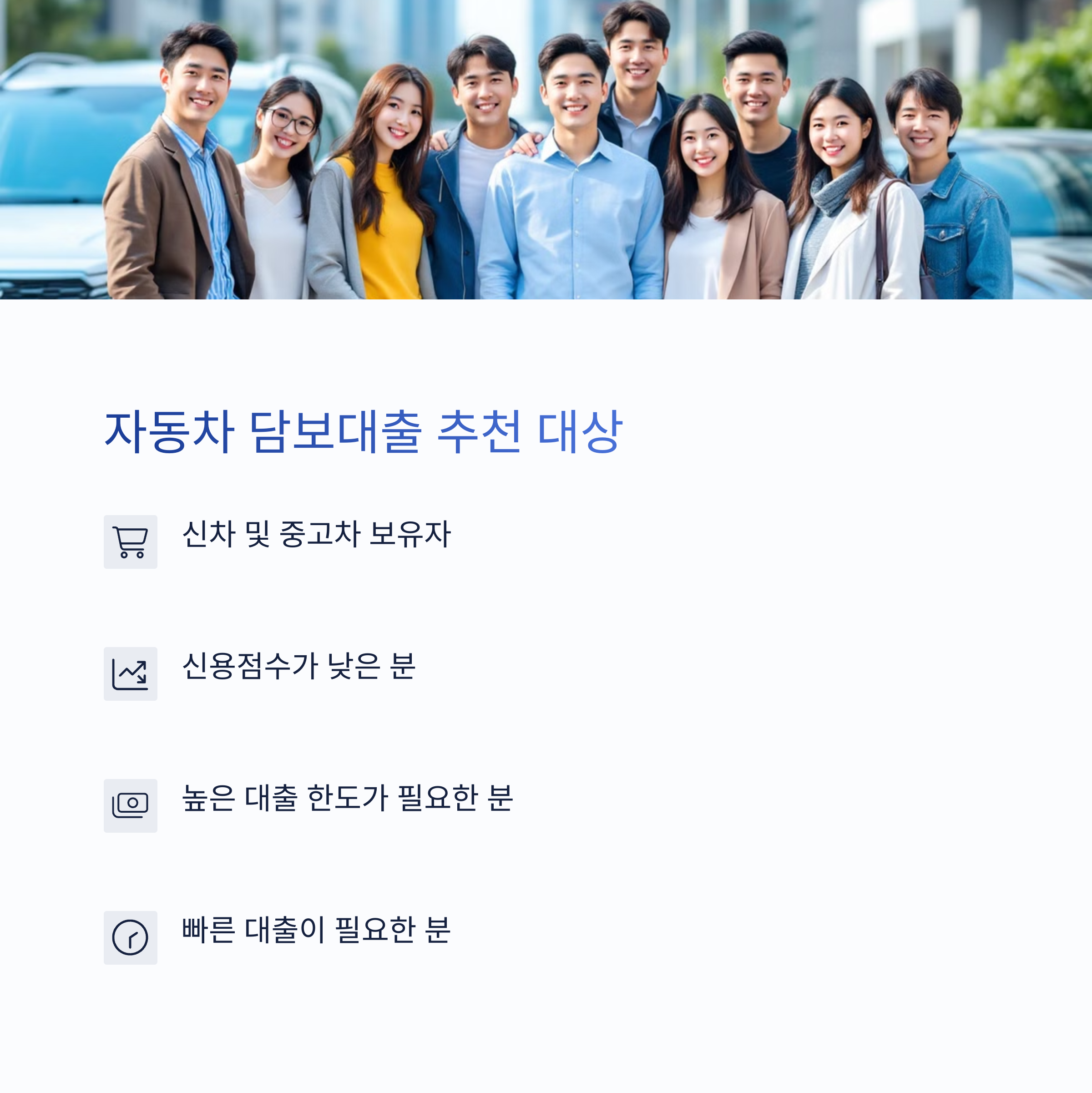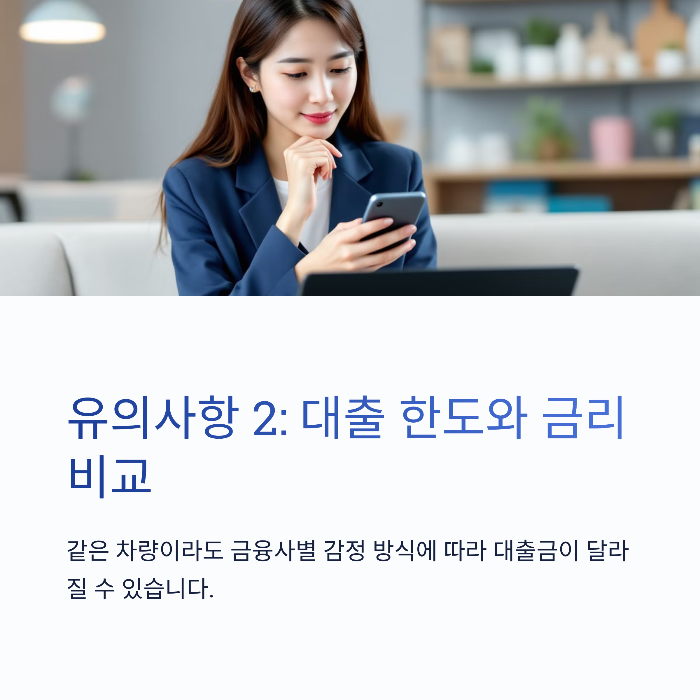 ✅ 추천 대상: 신차 및 중고차 보유자, 대출 한도가 높은 상품을 원하는 분