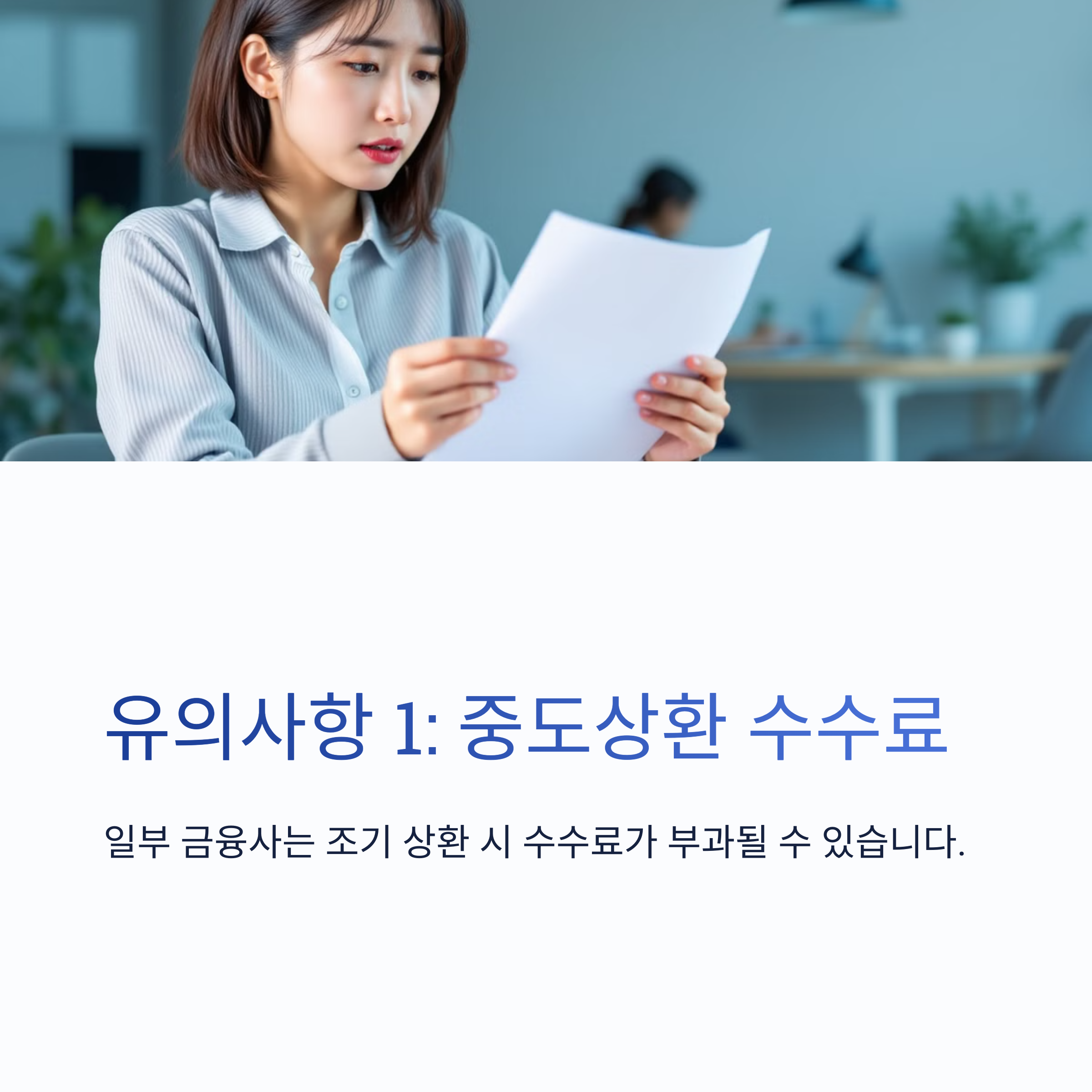 🚨 1. 중도상환 수수료 확인 – 일부 금융사는 조기 상환 시 수수료가 부과될 수 있음