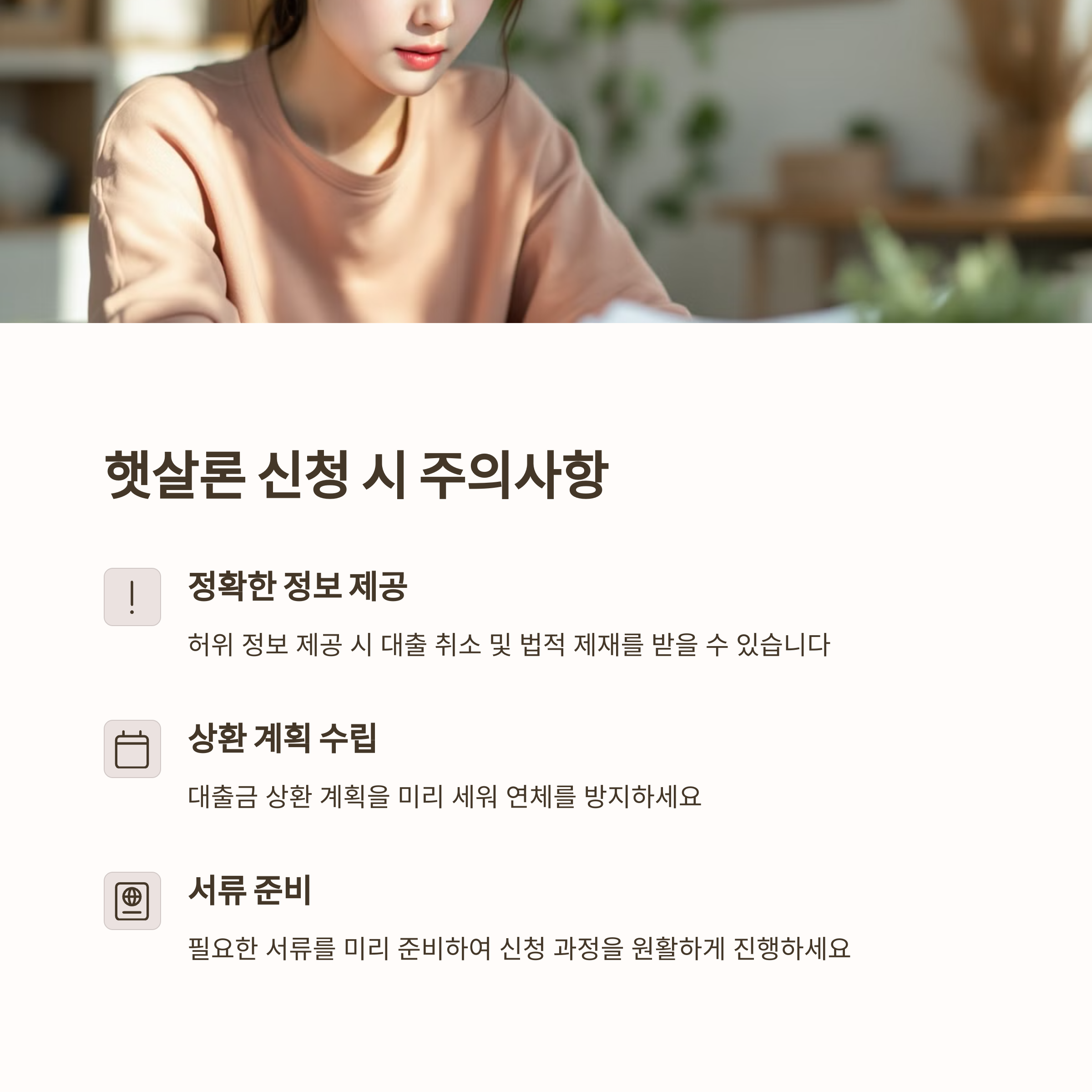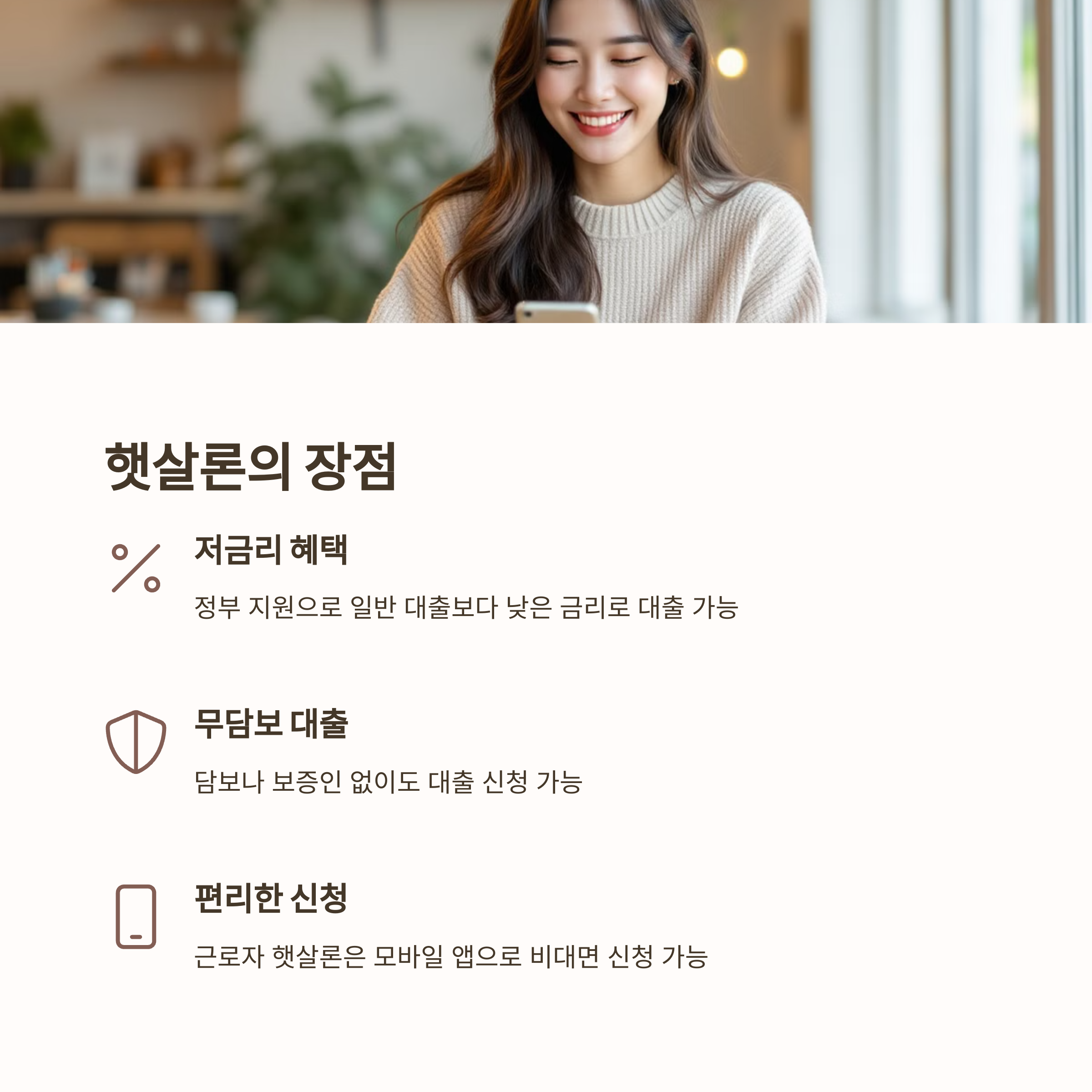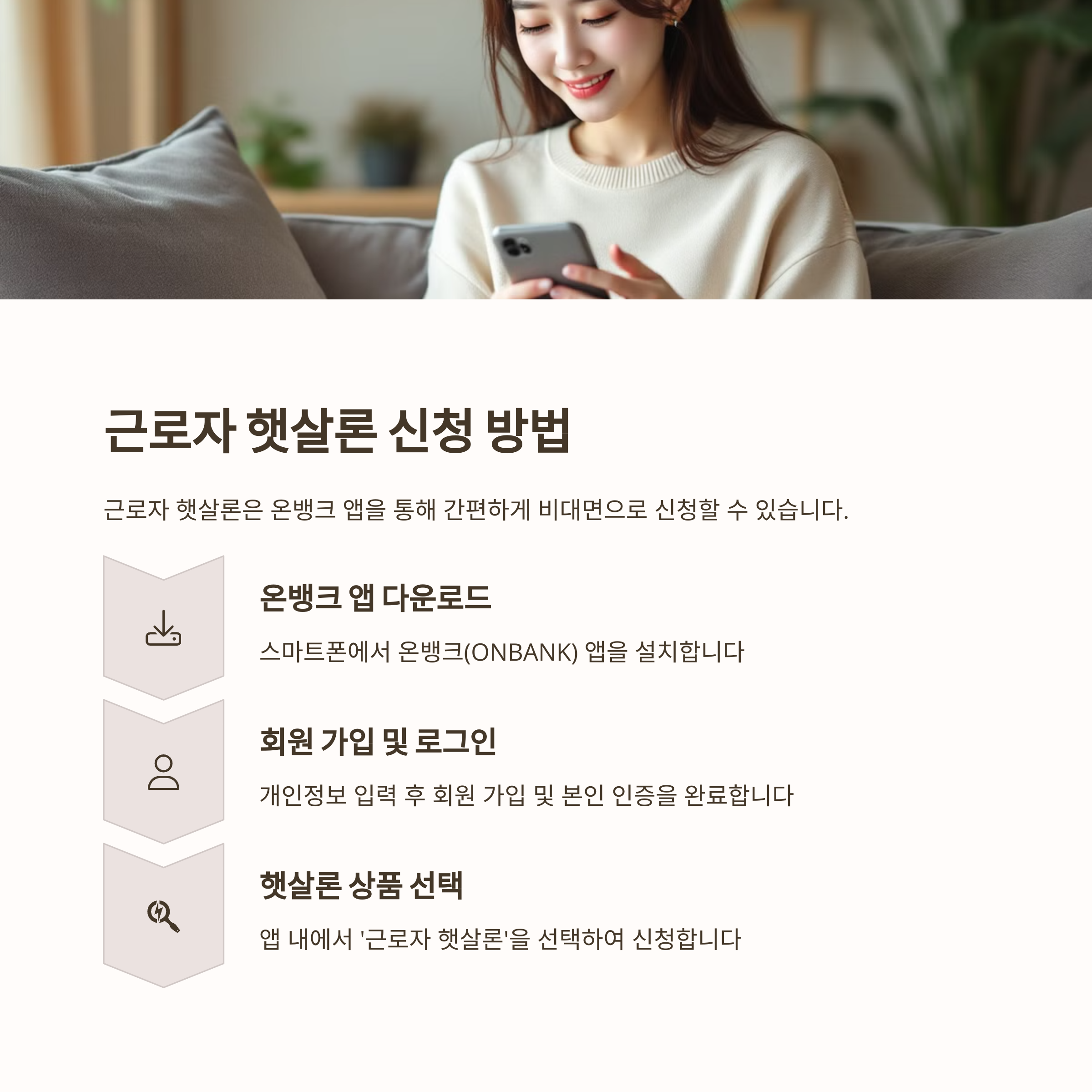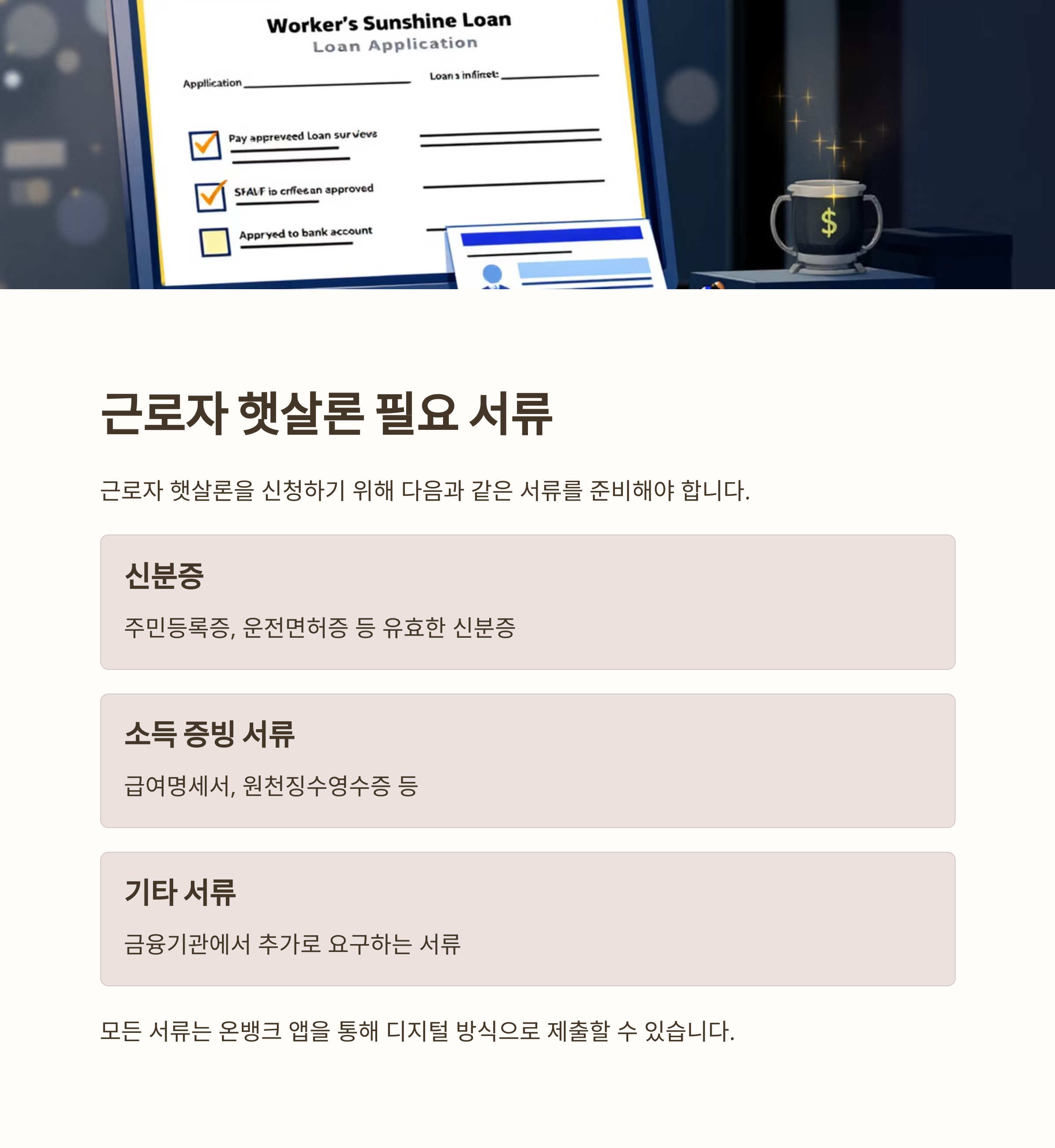 - 햇살론 상품 선택: 앱 내에서 ‘근로자 햇살론’을 선택하여 신청합니다.