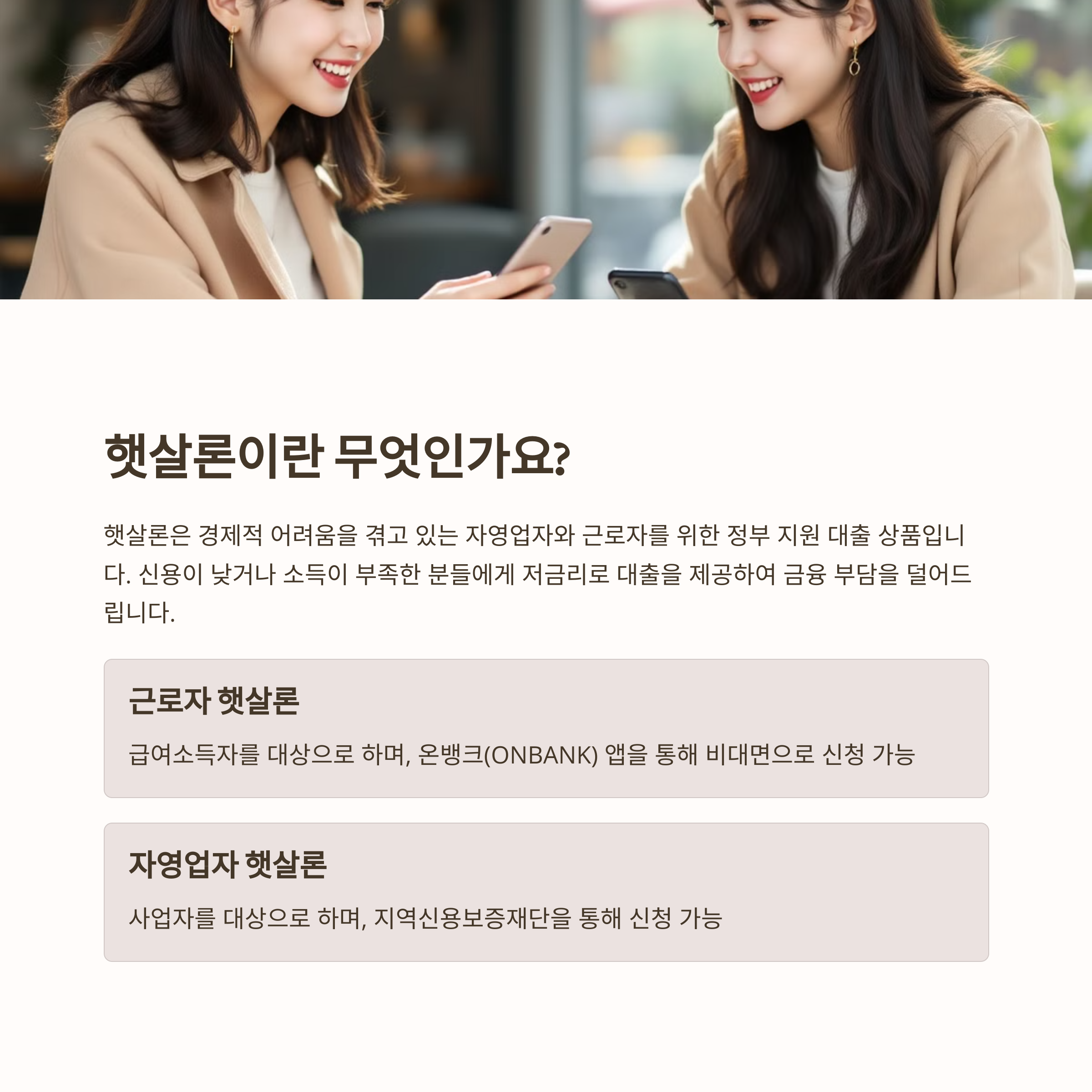 경제적 어려움을 겪고 있는 자영업자와 근로자를 위한 정부 지원 대출 상품인 햇살론은 신용이 낮거나 소득이 부족한 분들에게 큰 도움이 됩니다. 특히, 비대면 신청이 가능한 온뱅크(ONBANK) 근로자 햇살론과 자영업자를 위한 지역신용보증재단을 통한 햇살론은 많은 분들에게 유용한 금융 지원책입니다. 이번 글에서는 햇살론의 신청 방법과 자격 요건, 필요한 서류 등을 자세히 안내해 드리겠습니다.
