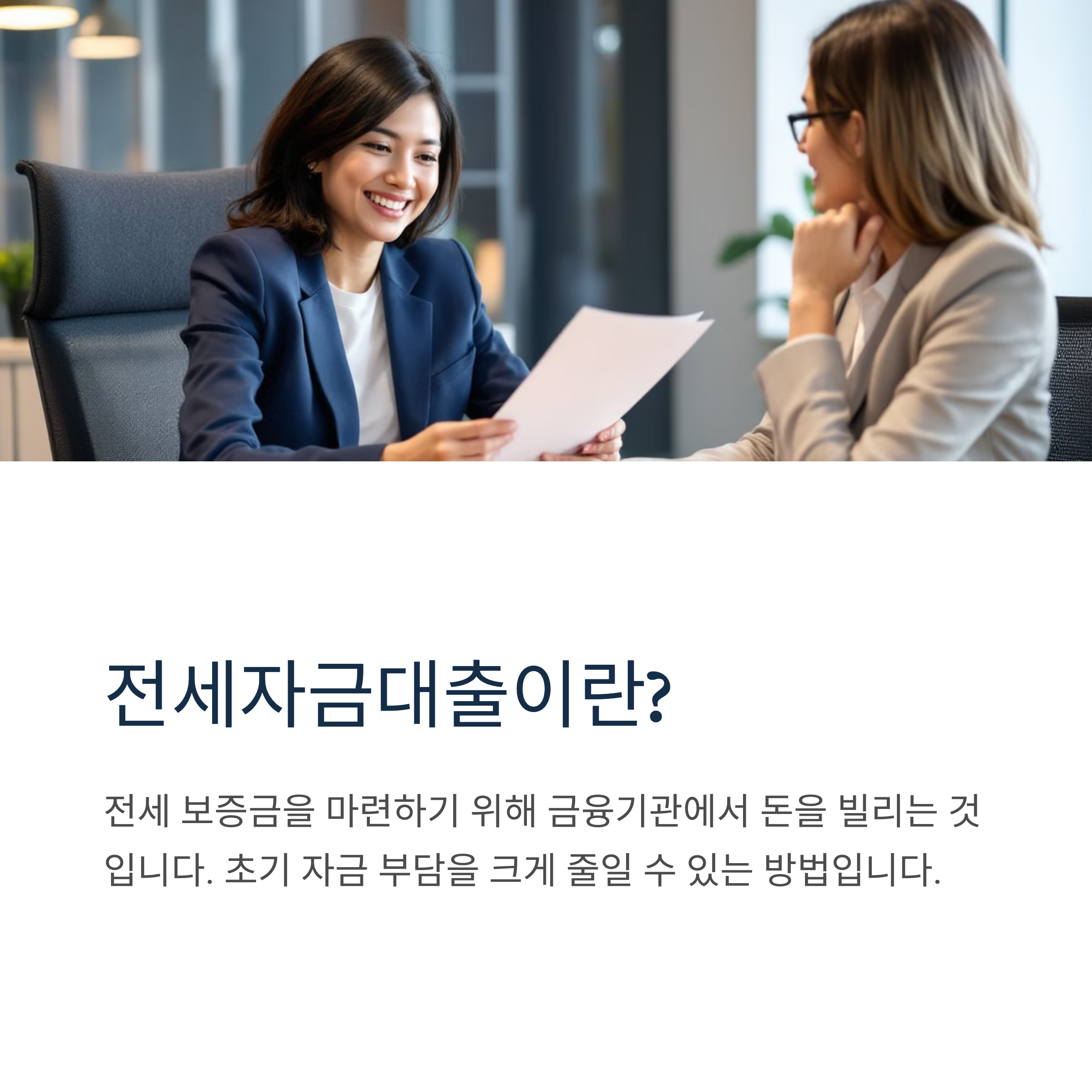 전세자금대출은 전세 보증금을 마련하기 위해 금융기관에서 돈을 빌리는 것을 의미합니다. 전세 계약을 체결할 때 많은 금액이 필요하기 때문에 대출을 활용하면 초기 자금 부담을 줄일 수 있습니다.