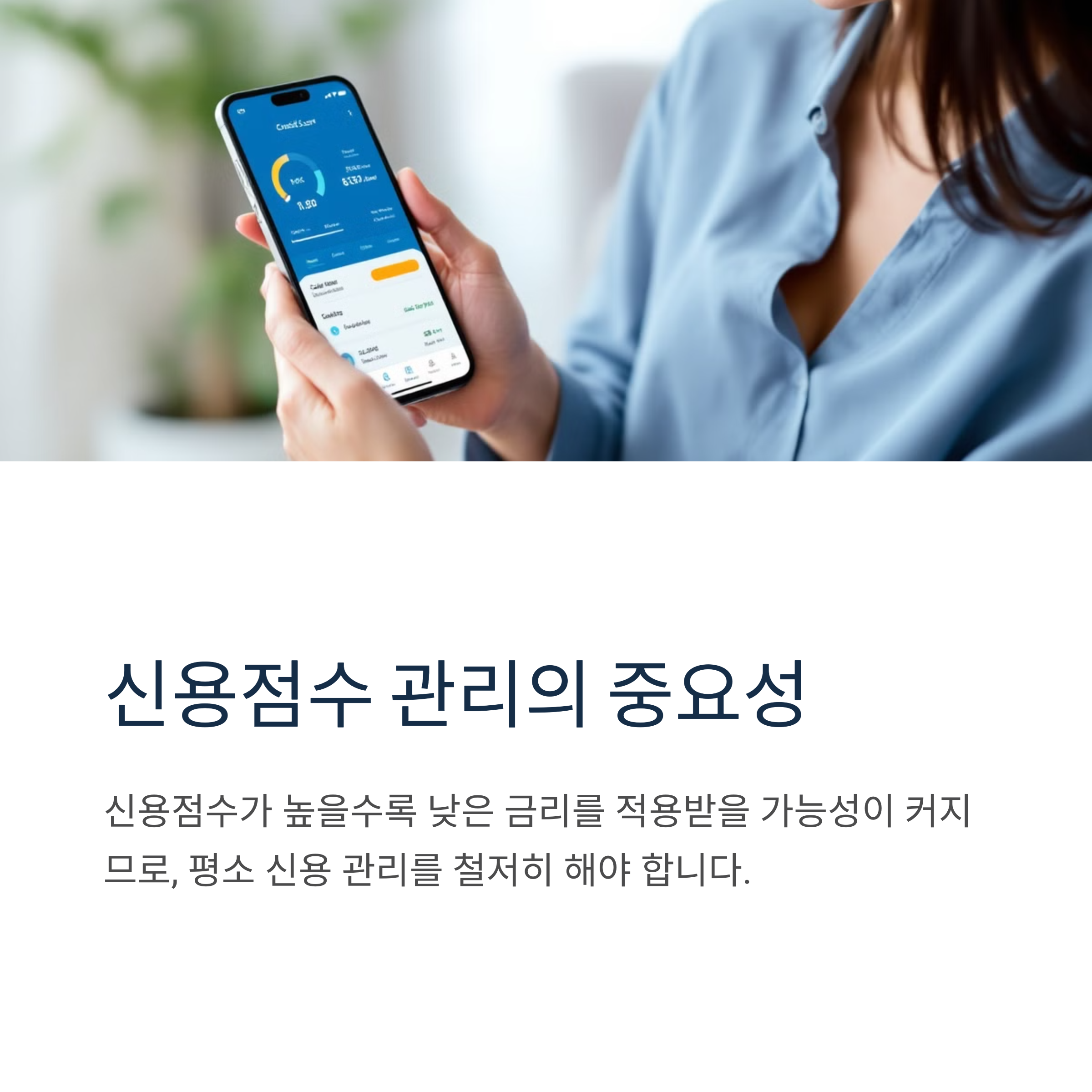 신용점수가 높을수록 낮은 금리를 적용받을 가능성이 커지므로, 평소 신용 관리를 철저히 해야 합니다.