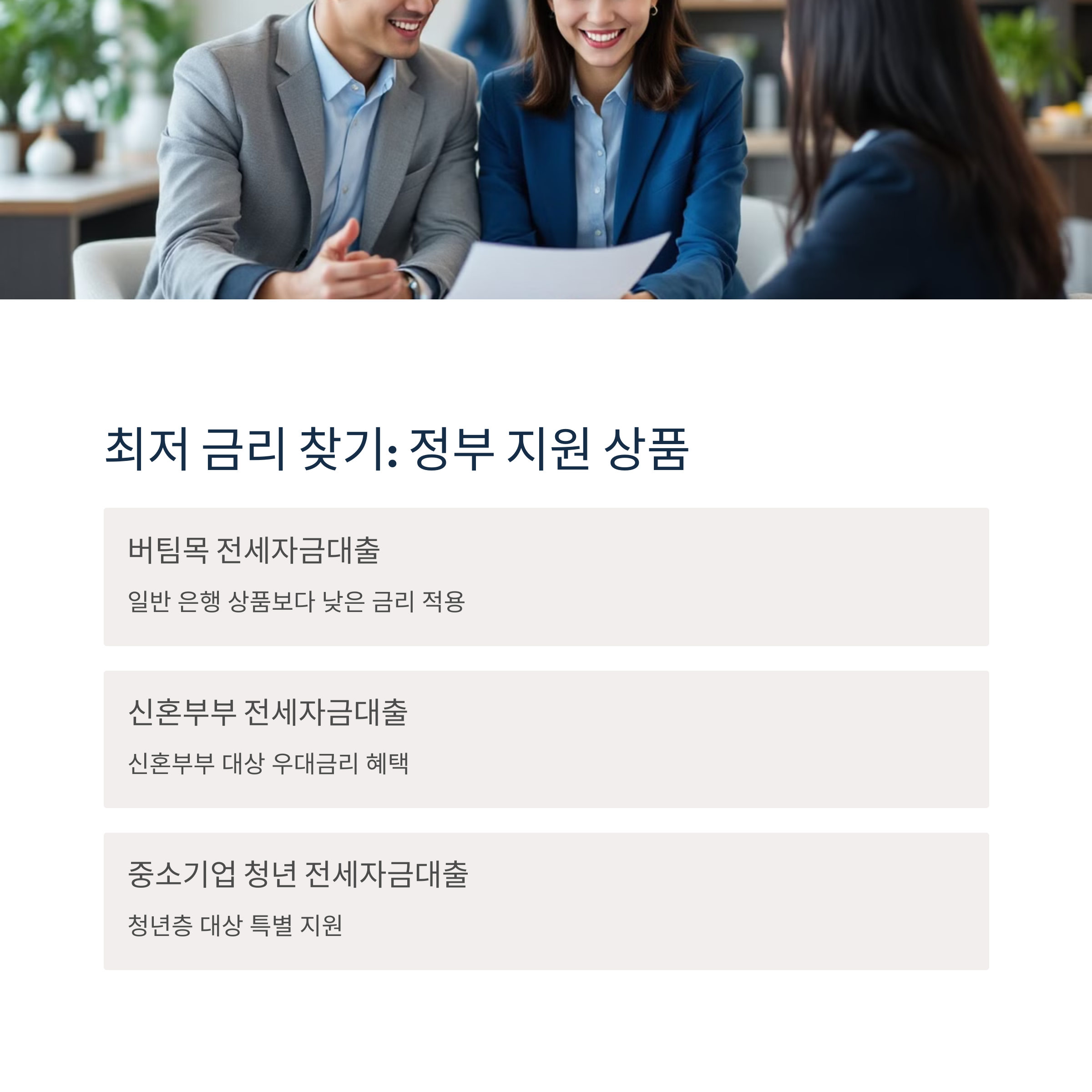 정부 지원 전세자금대출은 일반 은행 상품보다 낮은 금리가 적용됩니다. 신혼부부, 청년, 저소득층의 경우 우대금리 혜택도 받을 수 있습니다.