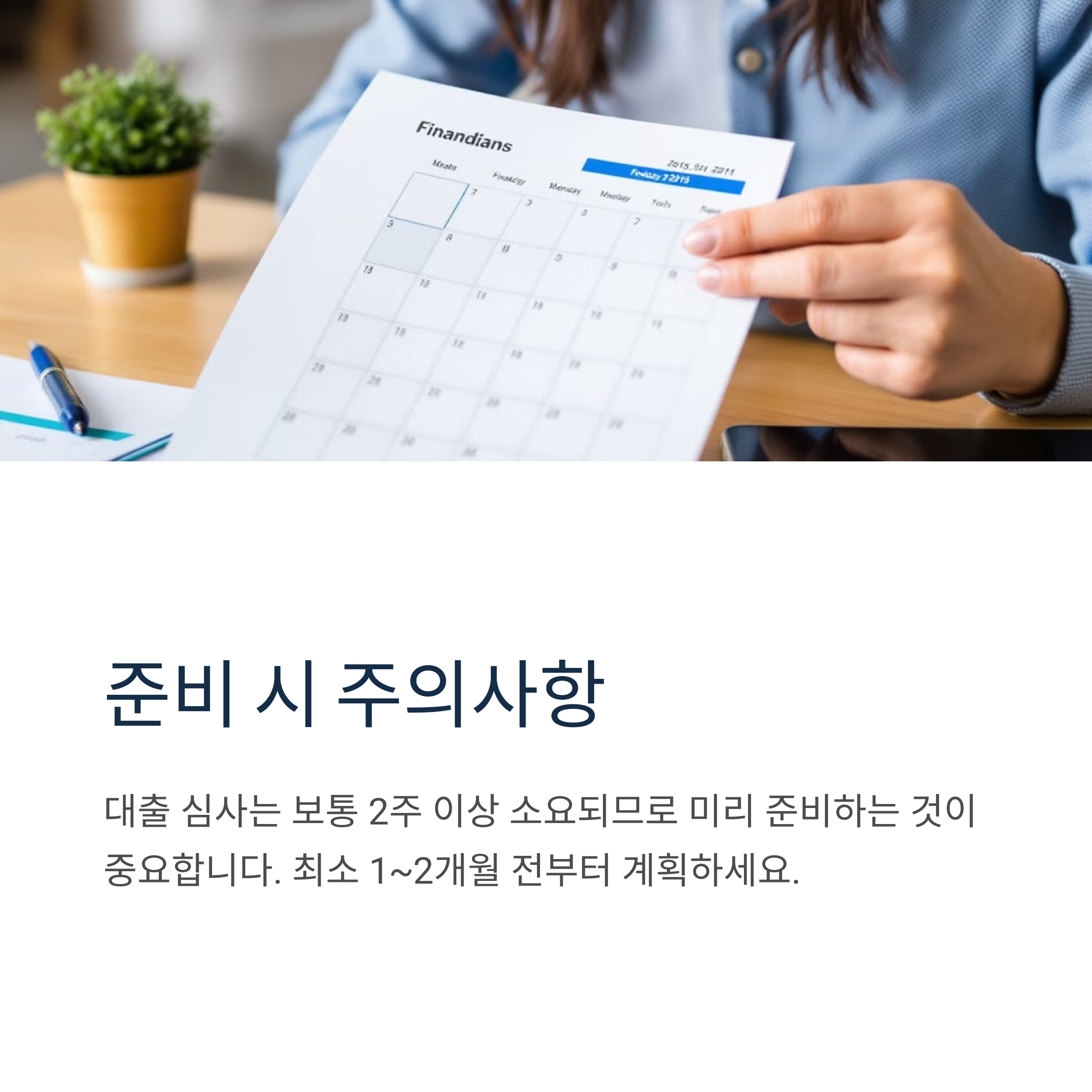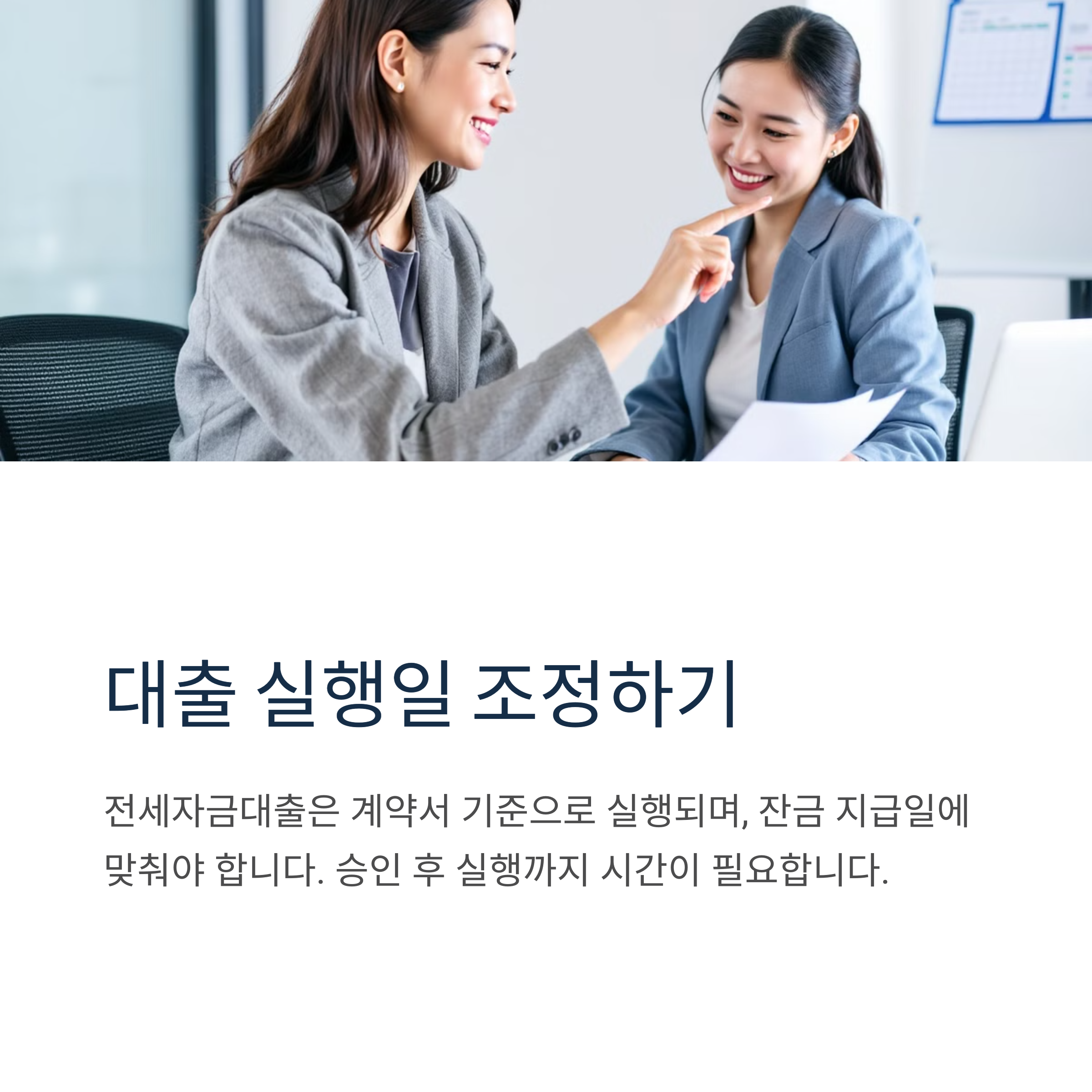 💡 Tip: 대출 승인 후 실행까지 시간이 필요하므로 최소 1~2개월 전부터 준비하세요.