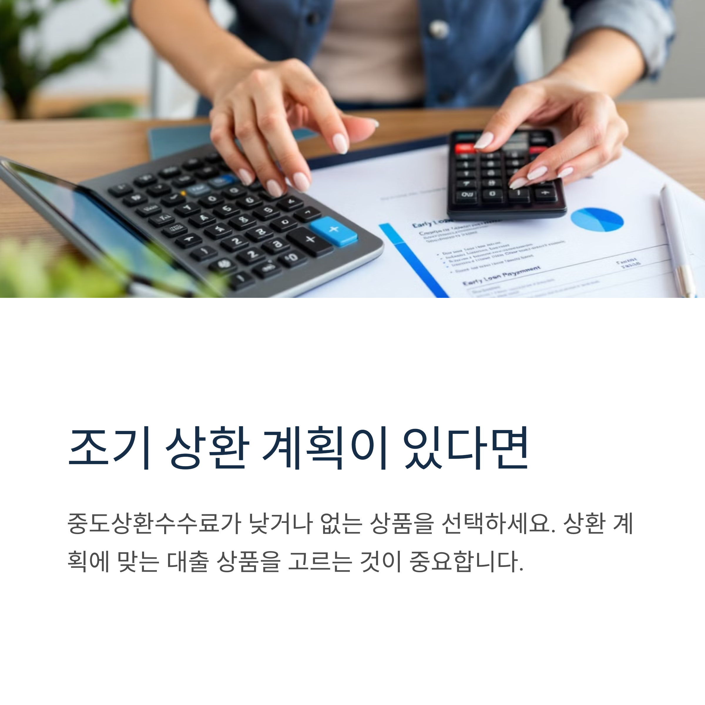 💡 Tip: 조기 상환 계획이 있다면 중도상환수수료가 낮거나 없는 상품을 선택하세요.