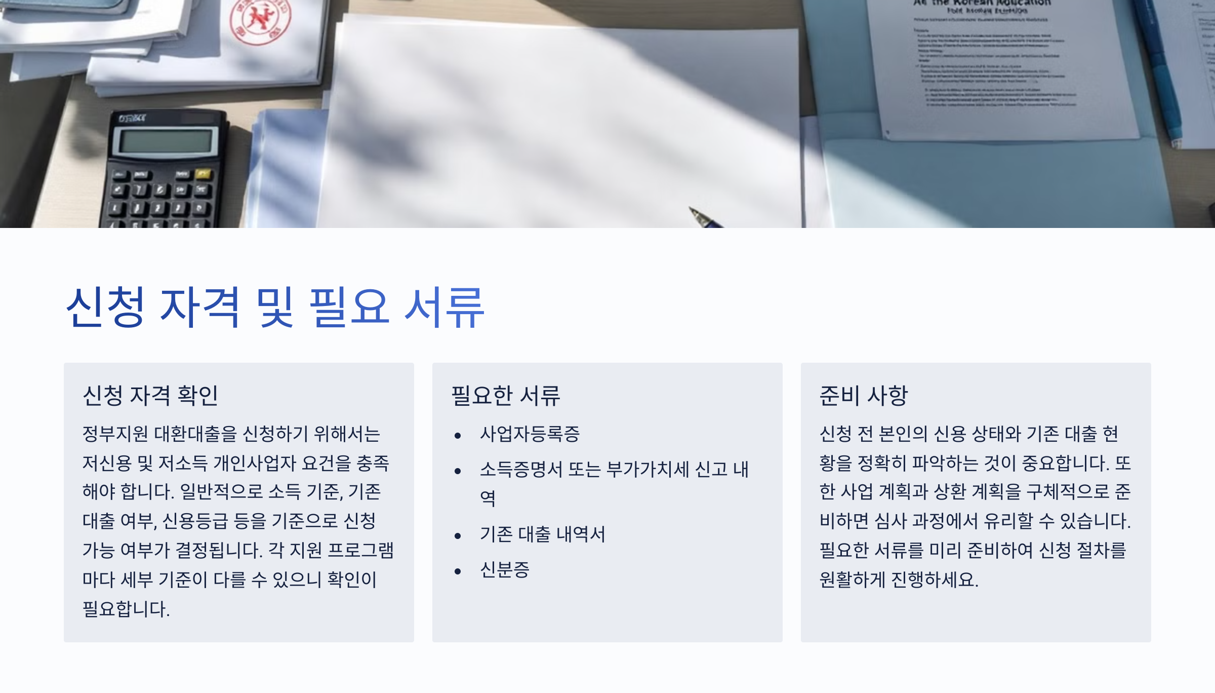 정부지원 대환대출을 신청하기 위해서는 저신용 및 저소득 개인사업자 요건을 충족해야 합니다. 일반적으로 소득 기준, 기존 대출 여부, 신용등급 등을 기준으로 신청 가능 여부가 결정됩니다.