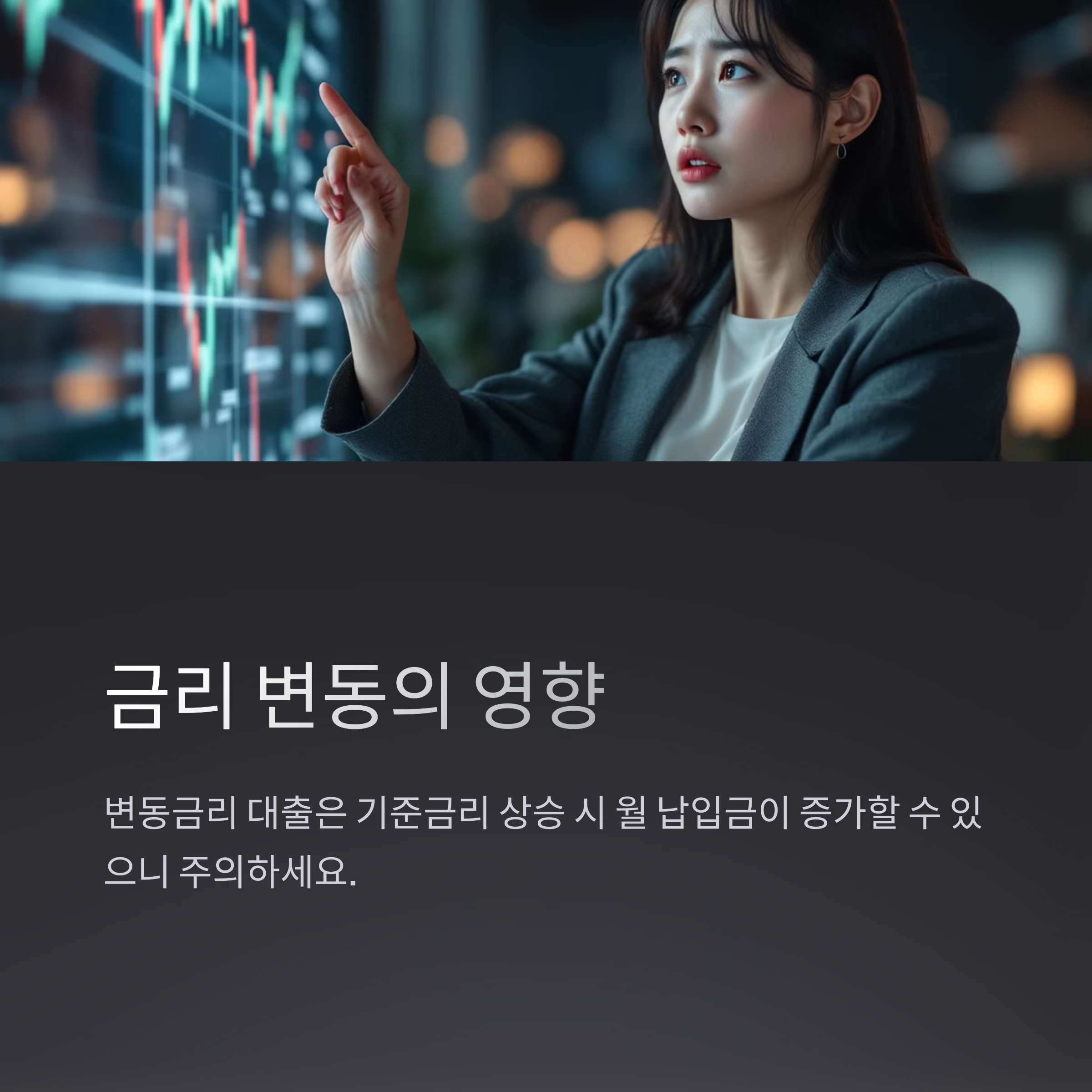 A2. 변동금리 대출의 경우, 기준금리 상승 시 월 납입금이 증가할 수 있으므로 주의가 필요합니다.