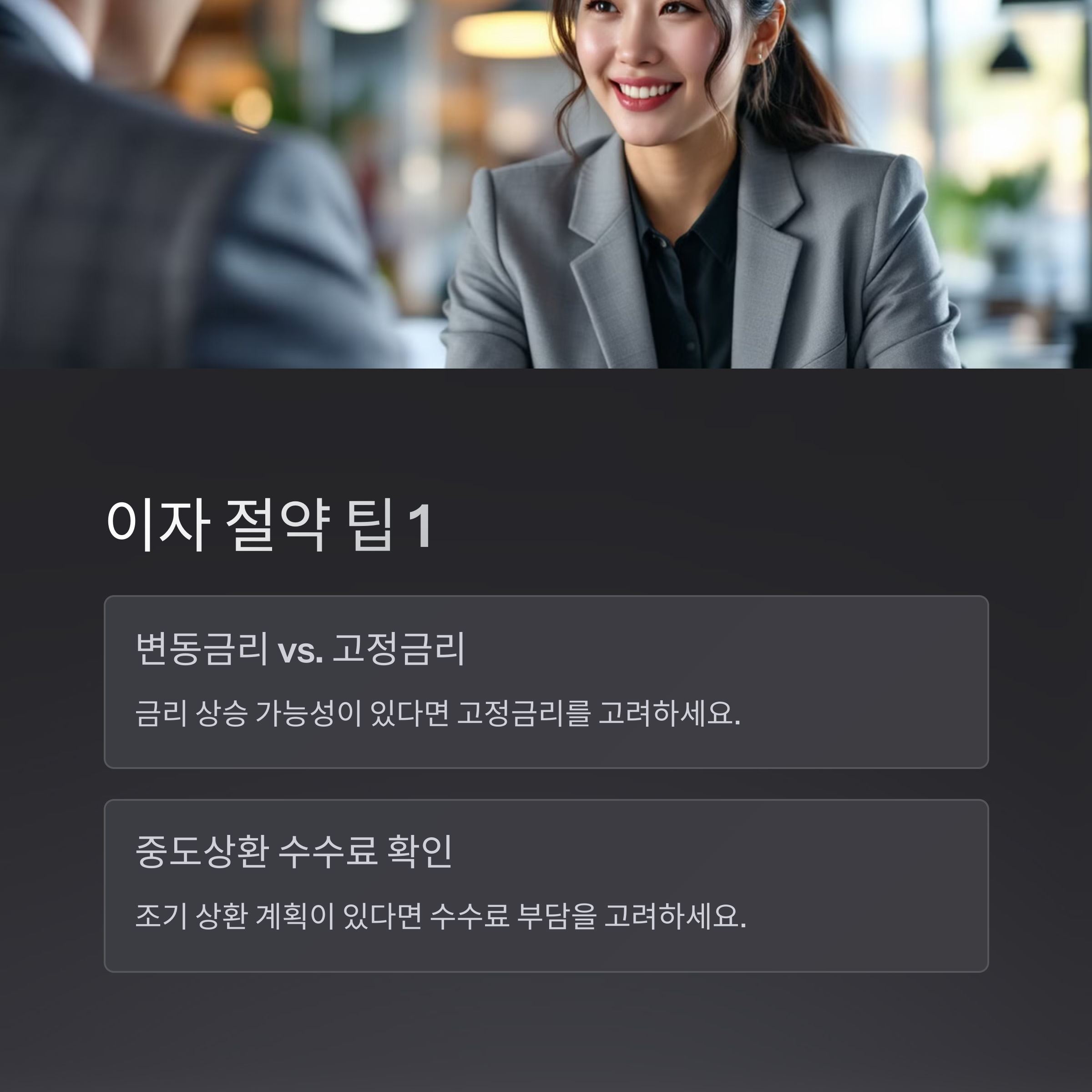 ✅ 중도상환 수수료 확인: 조기 상환 계획이 있다면 수수료 부담 고려