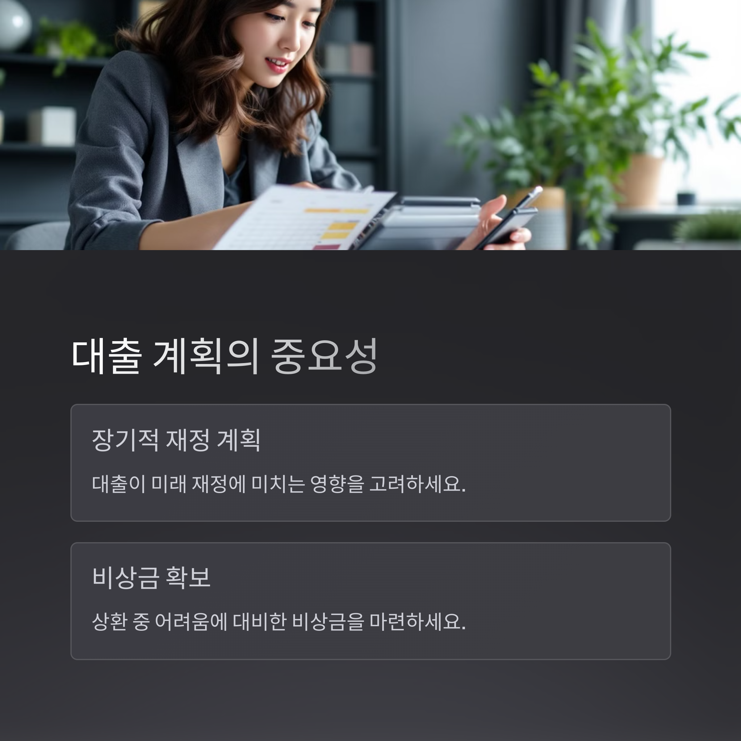 ✅ 상환 기간 단축 검토: 가능한 한 짧은 기간으로 설정하여 총 이자 부담 줄이기
