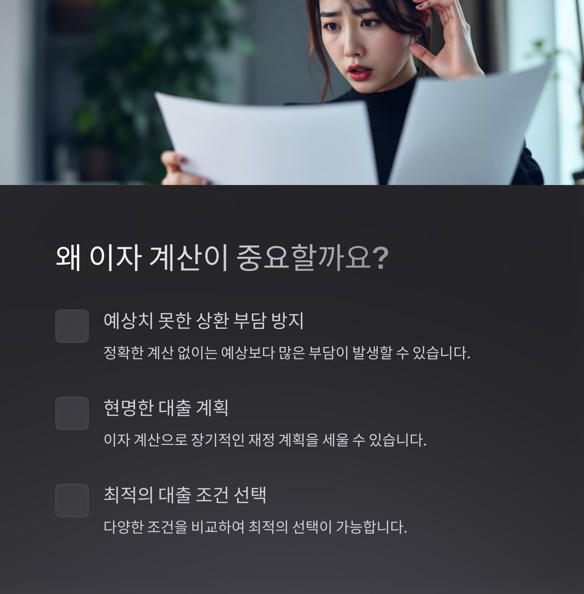 ✔ 총 이자 부담 확인: 대출 기간 동안 발생하는 총 이자 비용 확인
