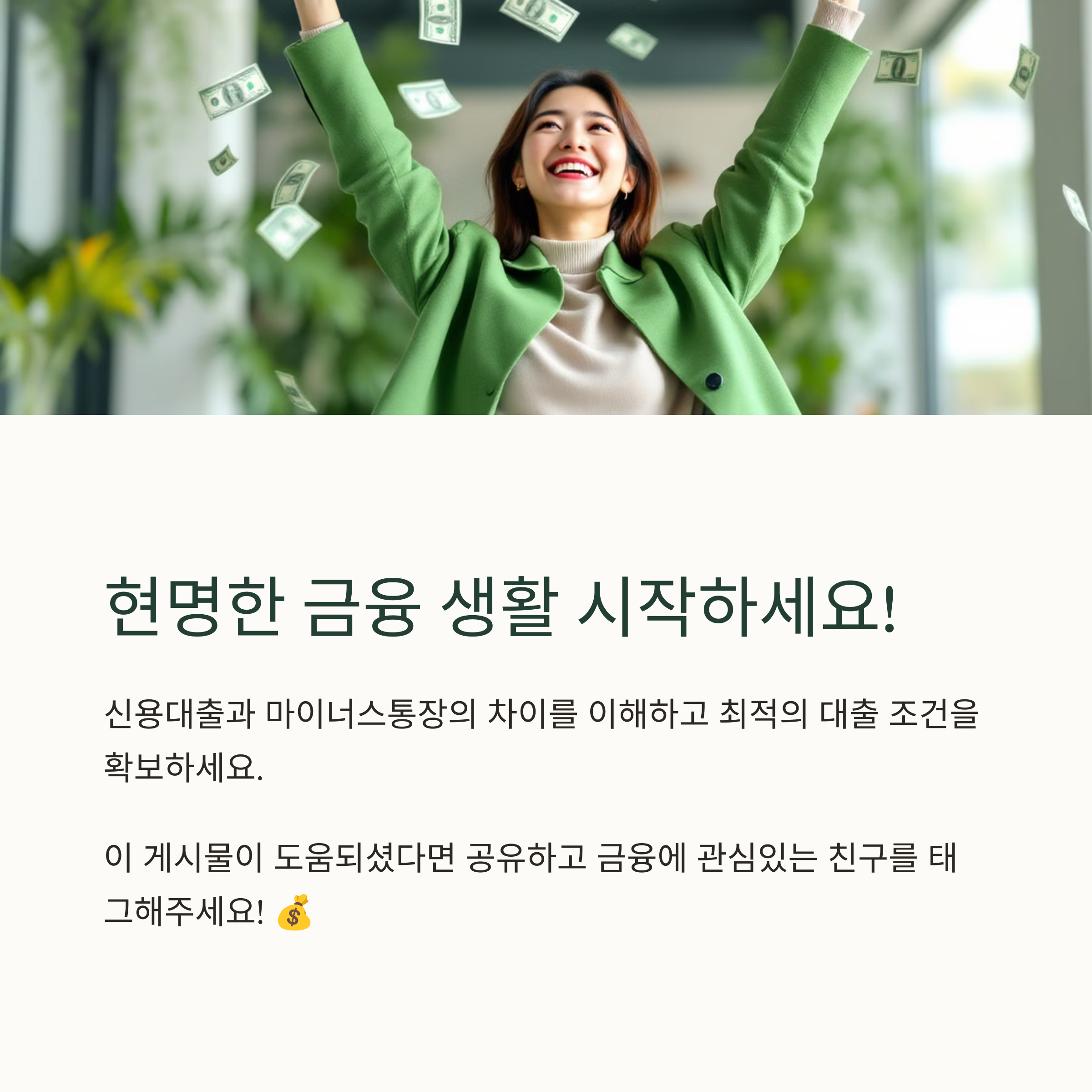 신용대출과 마이너스통장의 차이를 이해하고 최적의 대출 조건을 확보하여 현명한 금융 생활을 유지하세요!