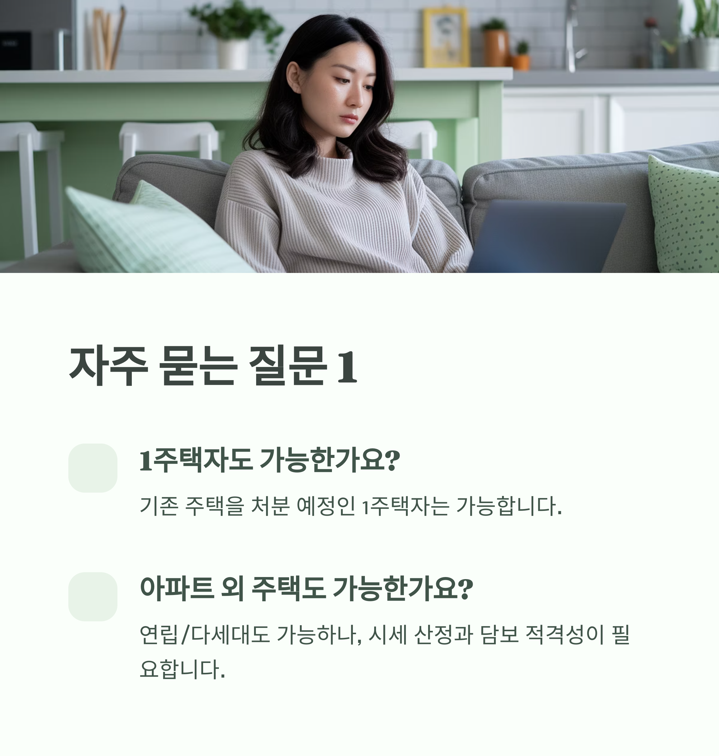 A1. 네, 기존 주택을 처분 예정인 1주택자는 가능하며, 담보로 제공할 주택은 새로 취득한 주택이어야 합니다.
