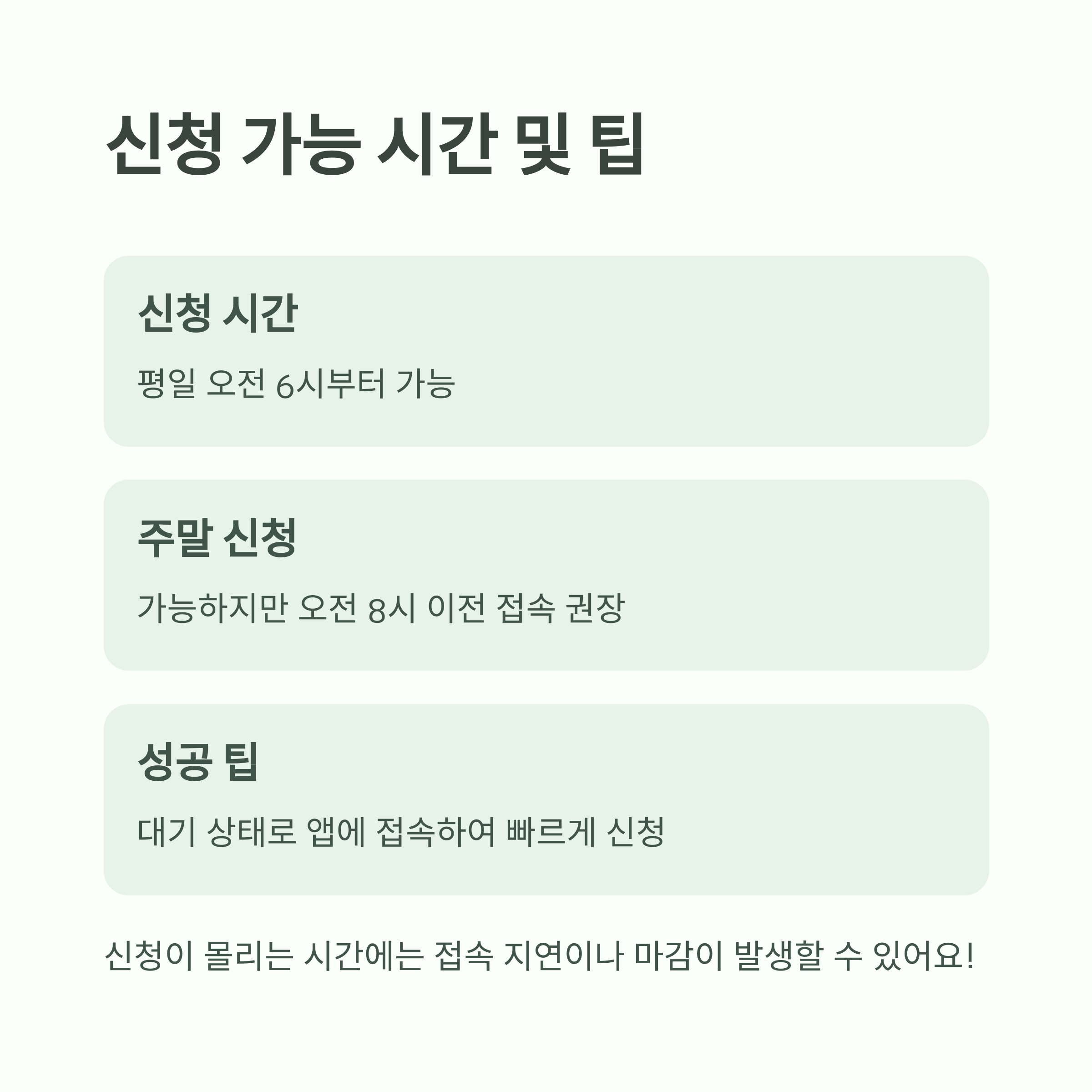 - 신청 가능 시간: 평일 오전 6시부터