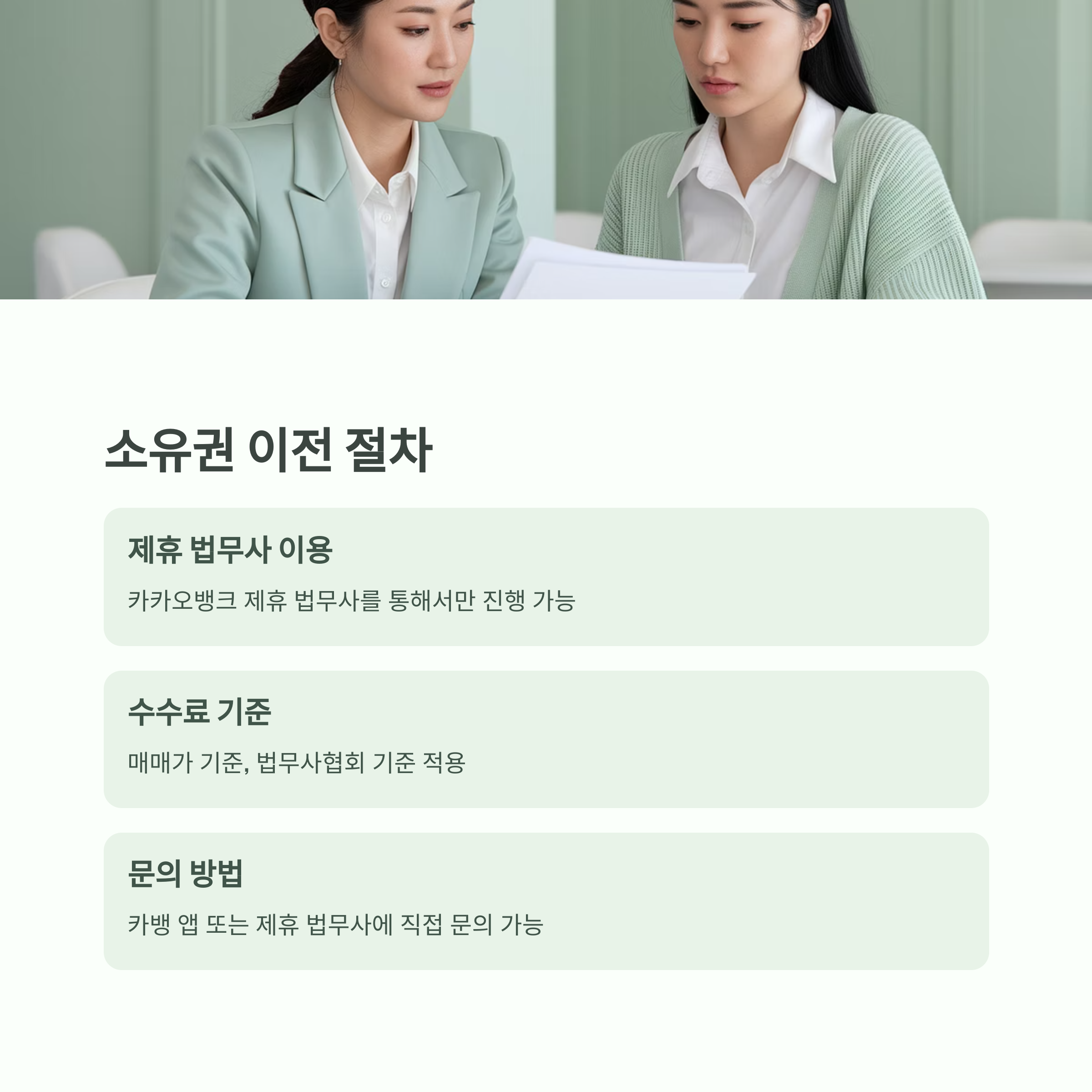 - 등기 관련 문의는 카뱅 앱 또는 제휴 법무사에게 가능