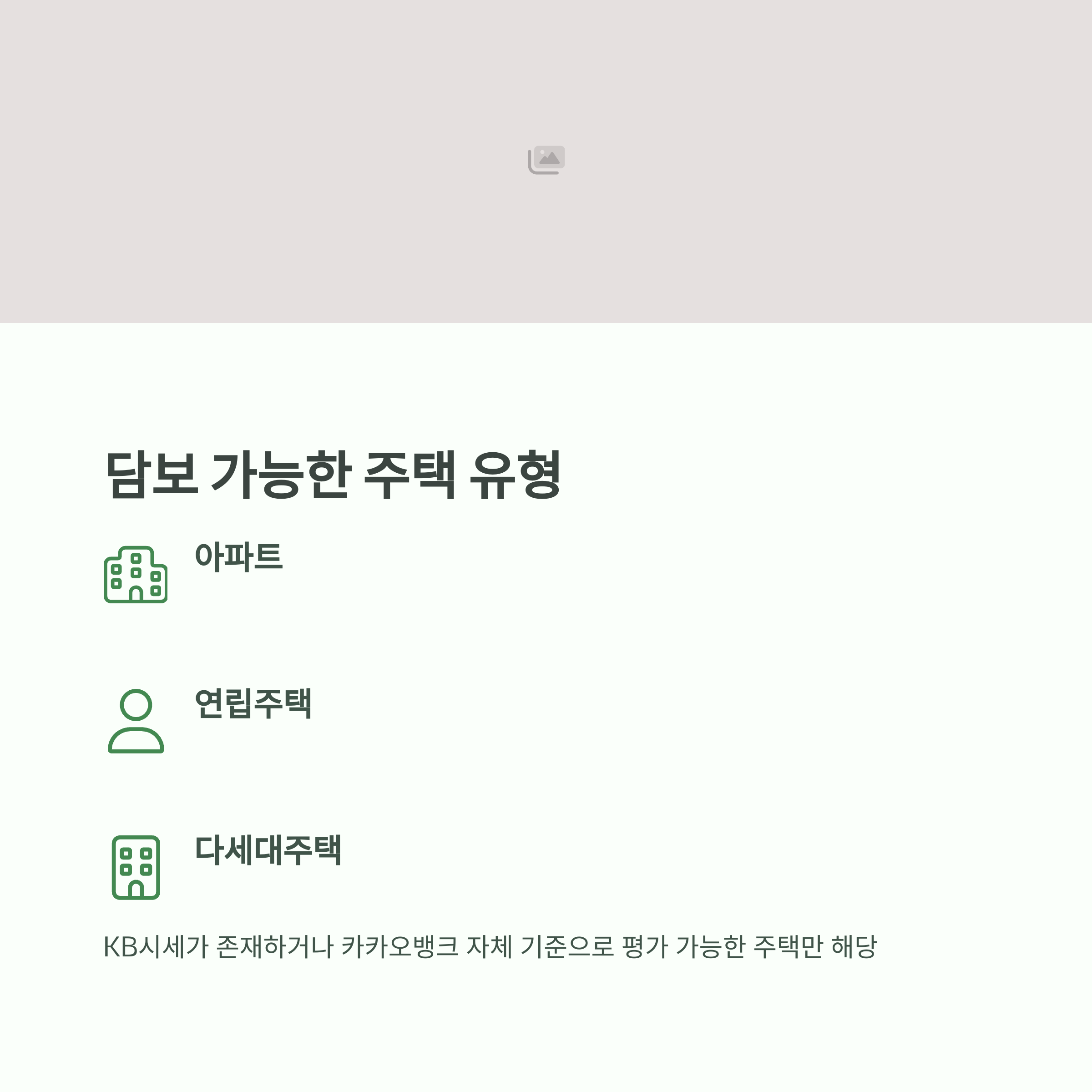 - KB시세 존재 또는 카카오뱅크 자체 기준 평가 가능한