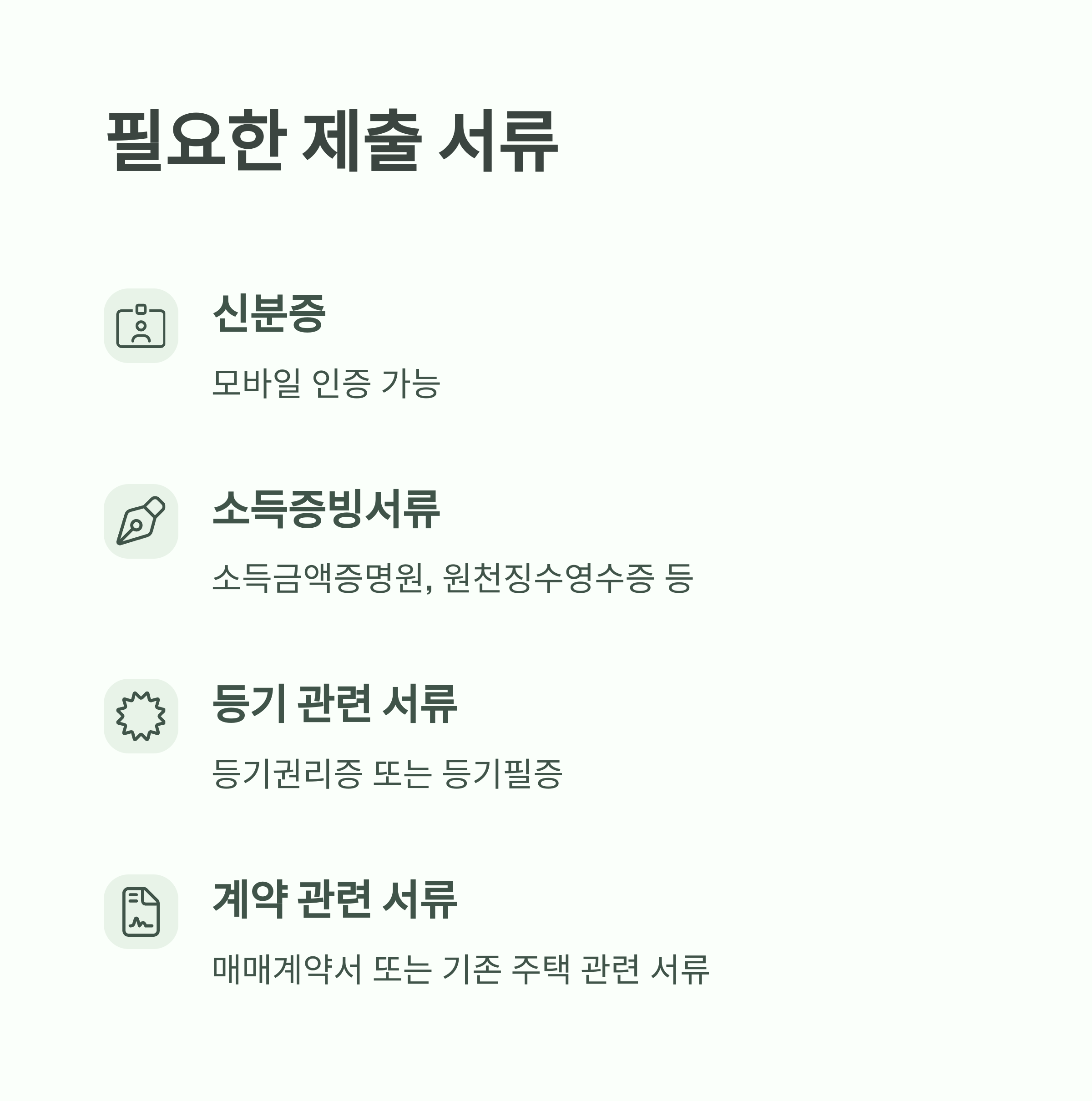 - 소득증빙서류 (소득금액증명원, 원천징수영수증 등)