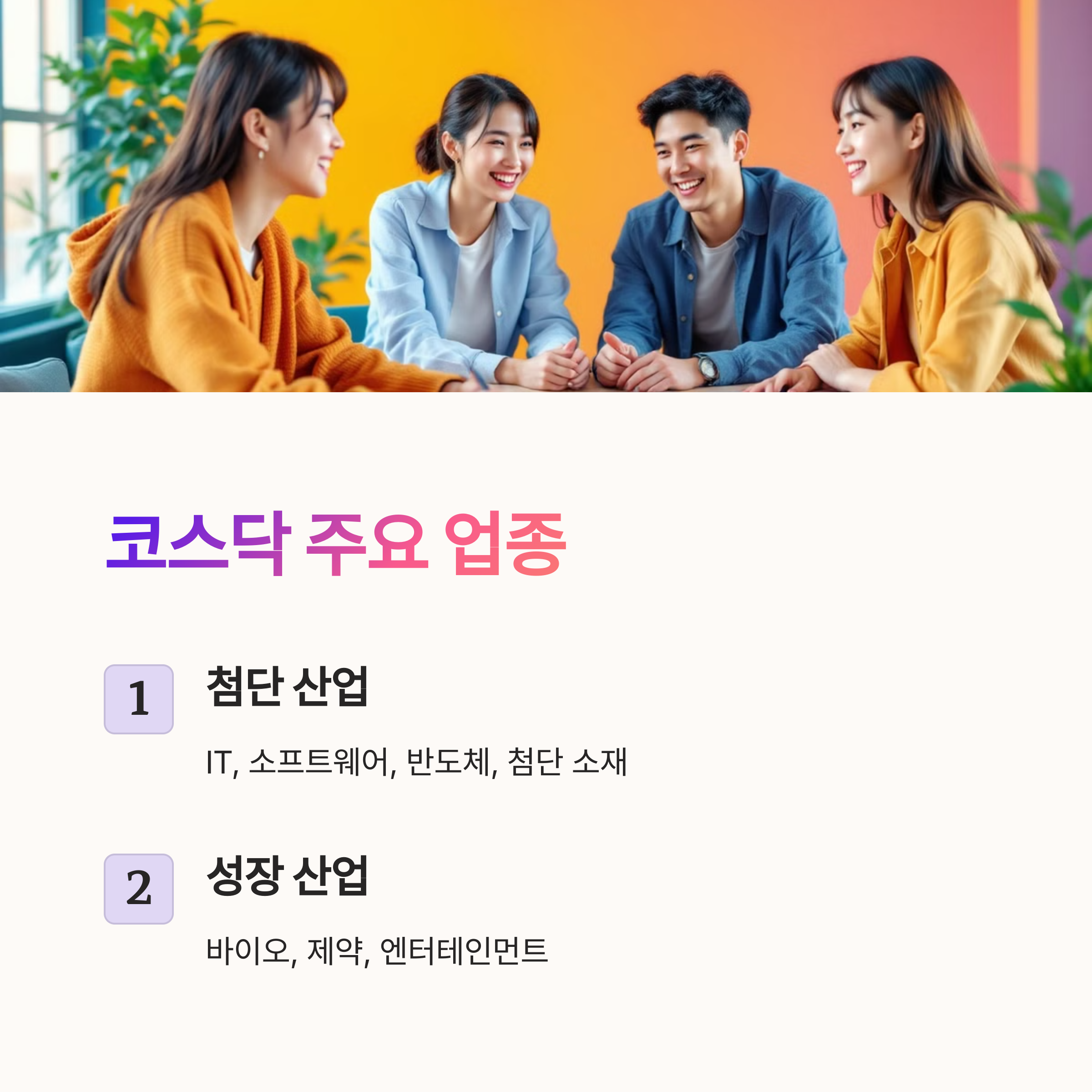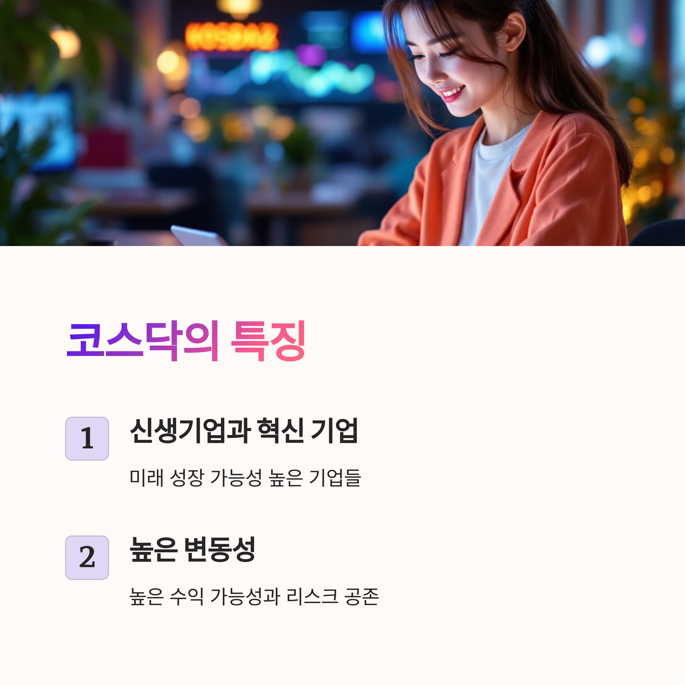 - 코스닥: 성장 가능성이 높은 중소·벤처기업 중심 시장