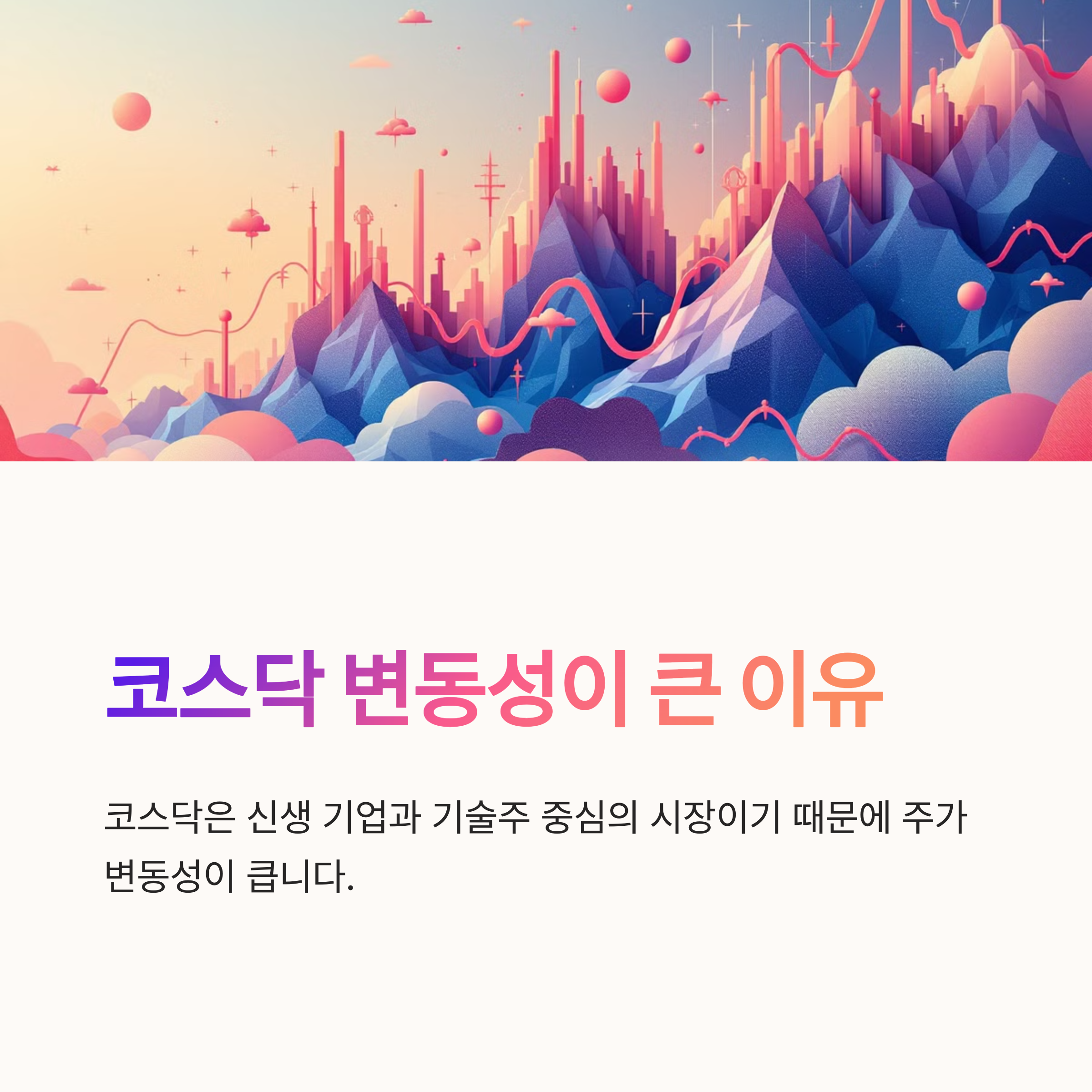 A4. 코스닥은 신생 기업과 기술주 중심의 시장이기 때문에 주가 변동성이 큽니다.