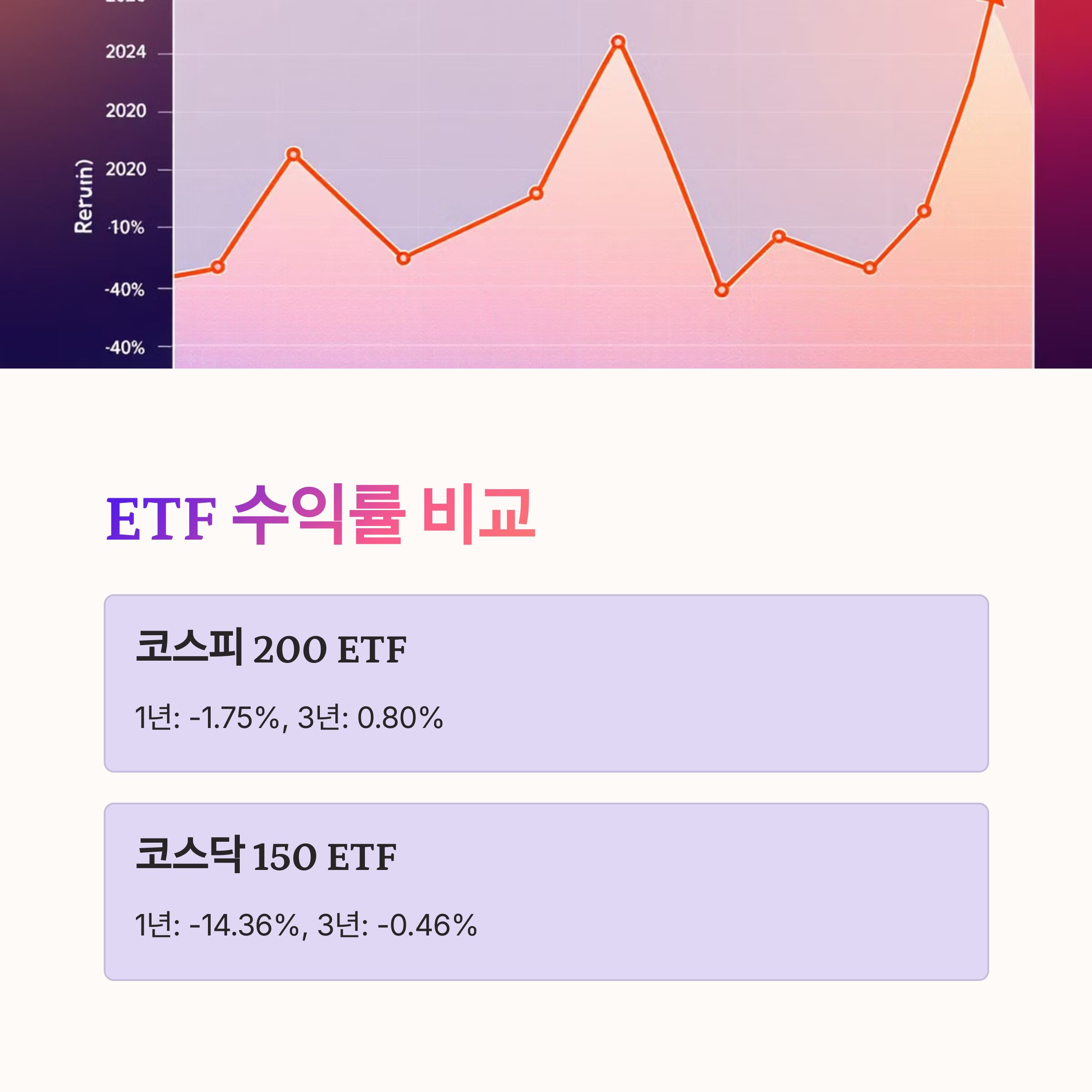 ETF를 활용하면 코스피와 코스닥 시장의 성과를 간편하게 추종할 수 있습니다. 투자 성향에 따라 적합한 상품을 선택하세요.