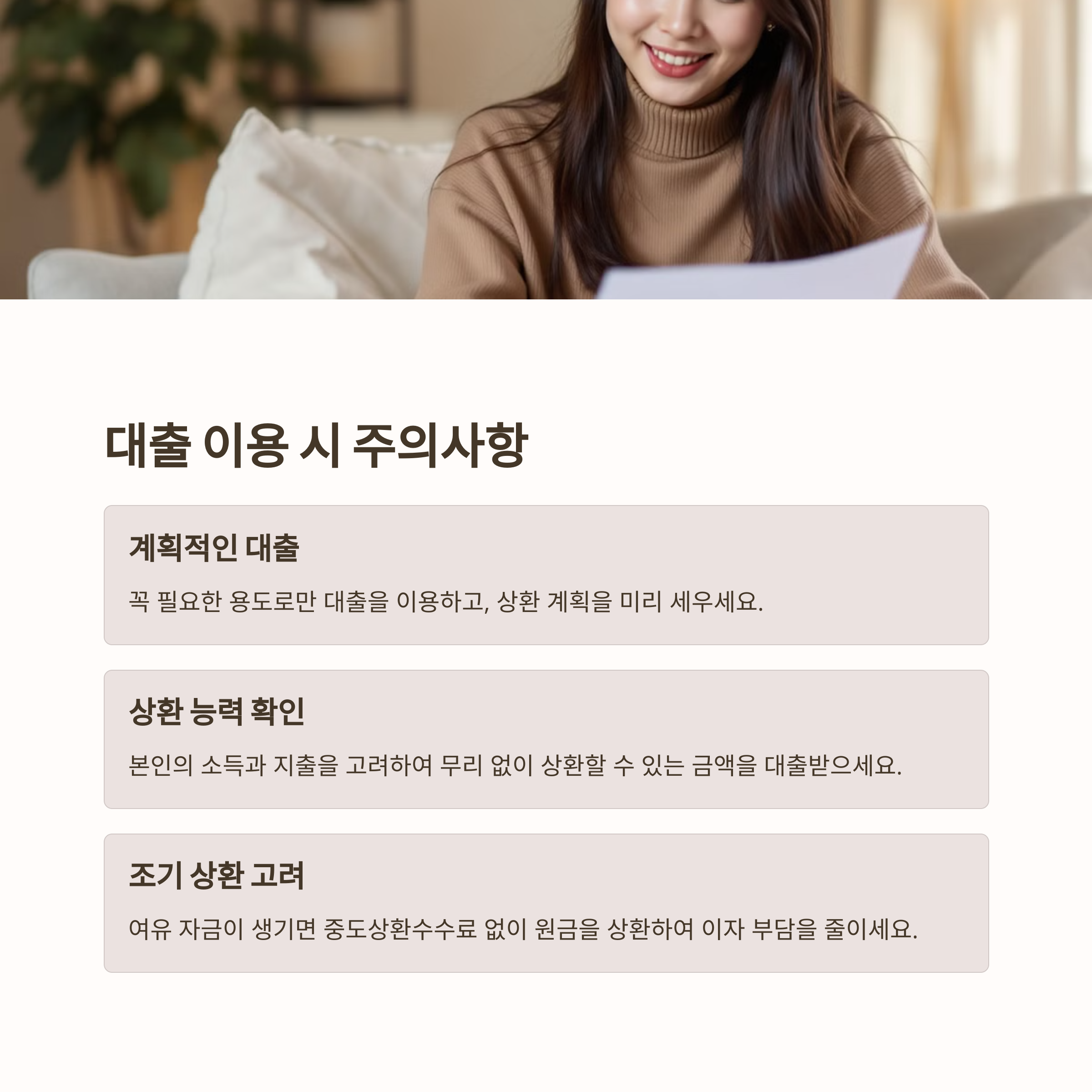 ✅ 중도상환수수료 면제 : 여유 자금이 생길 때 부담 없이 조기 상환 가능