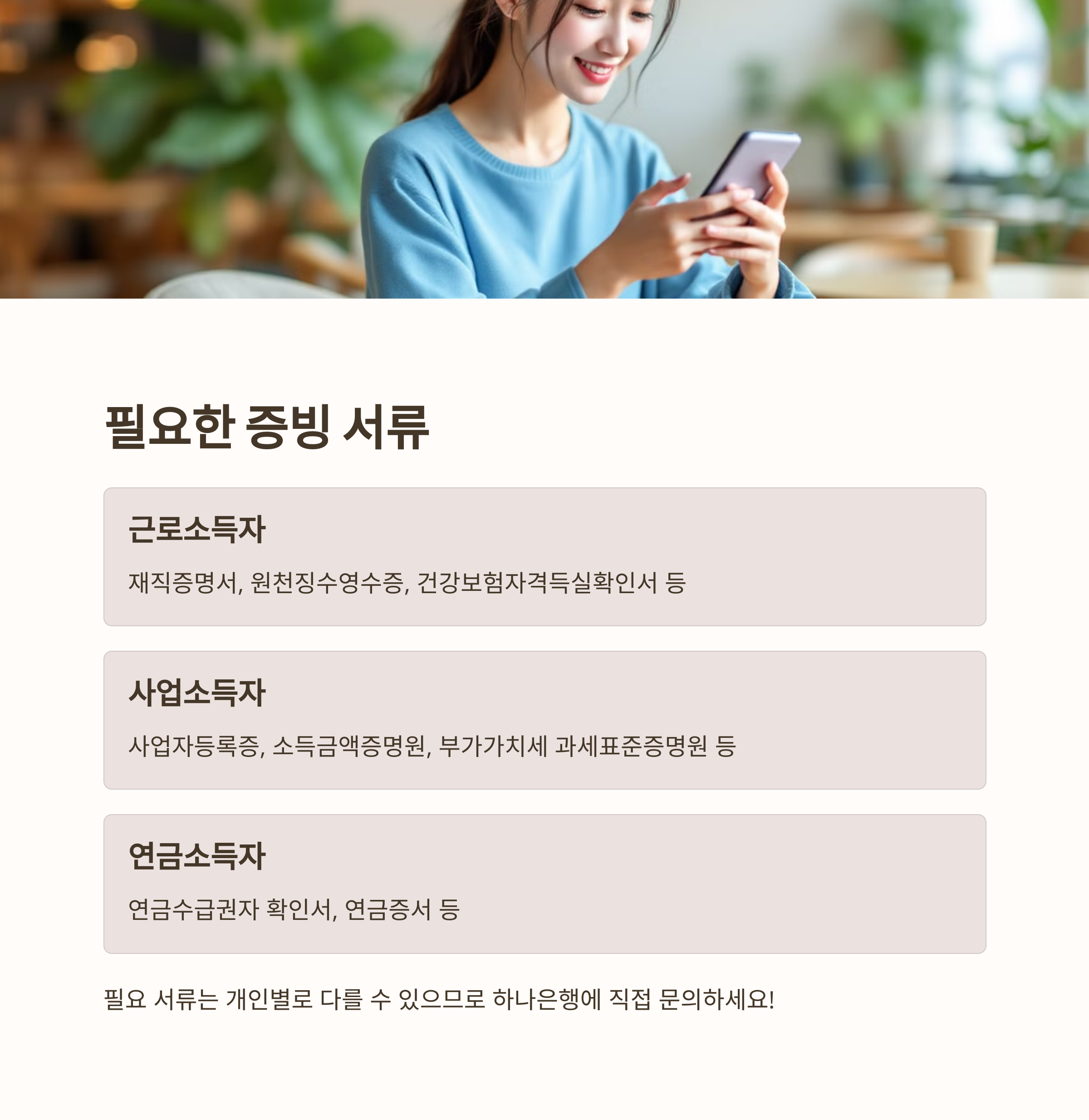 ※ 필요 서류는 개인별로 다를 수 있으므로 하나은행에 직접 문의하세요!