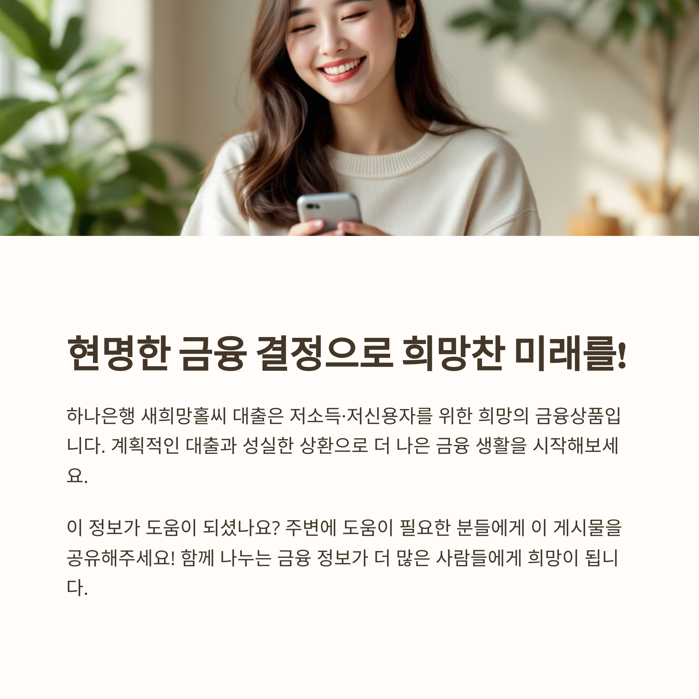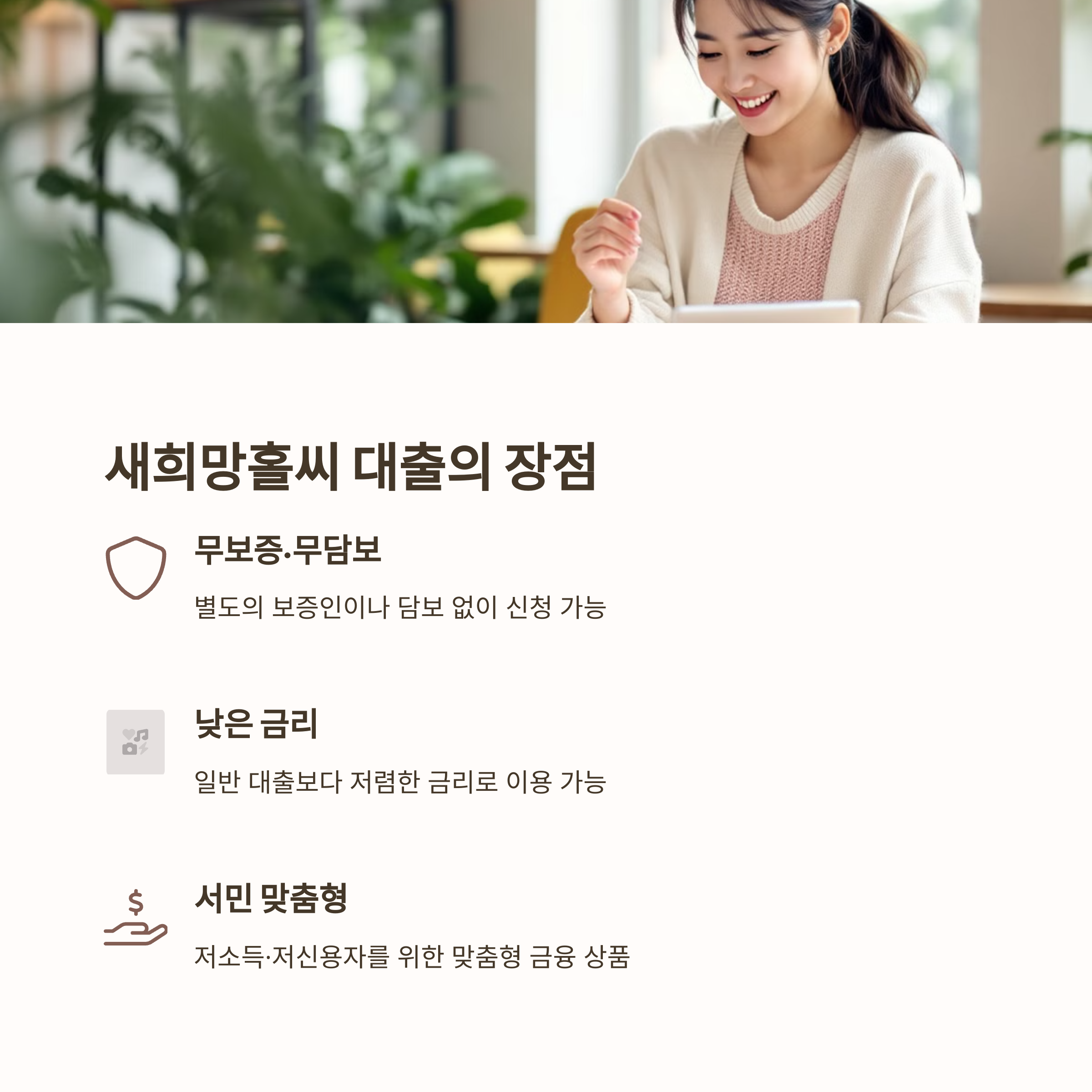 새희망홀씨 대출은 정부 지원 서민금융 상품으로, 저소득·저신용 계층이 보다 쉽게 금융 서비스를 이용할 수 있도록 지원하는 대출 상품입니다. 무보증·무담보로 간편하게 신청 가능하며, 경제적 자립을 돕는 데 큰 역할을 합니다.