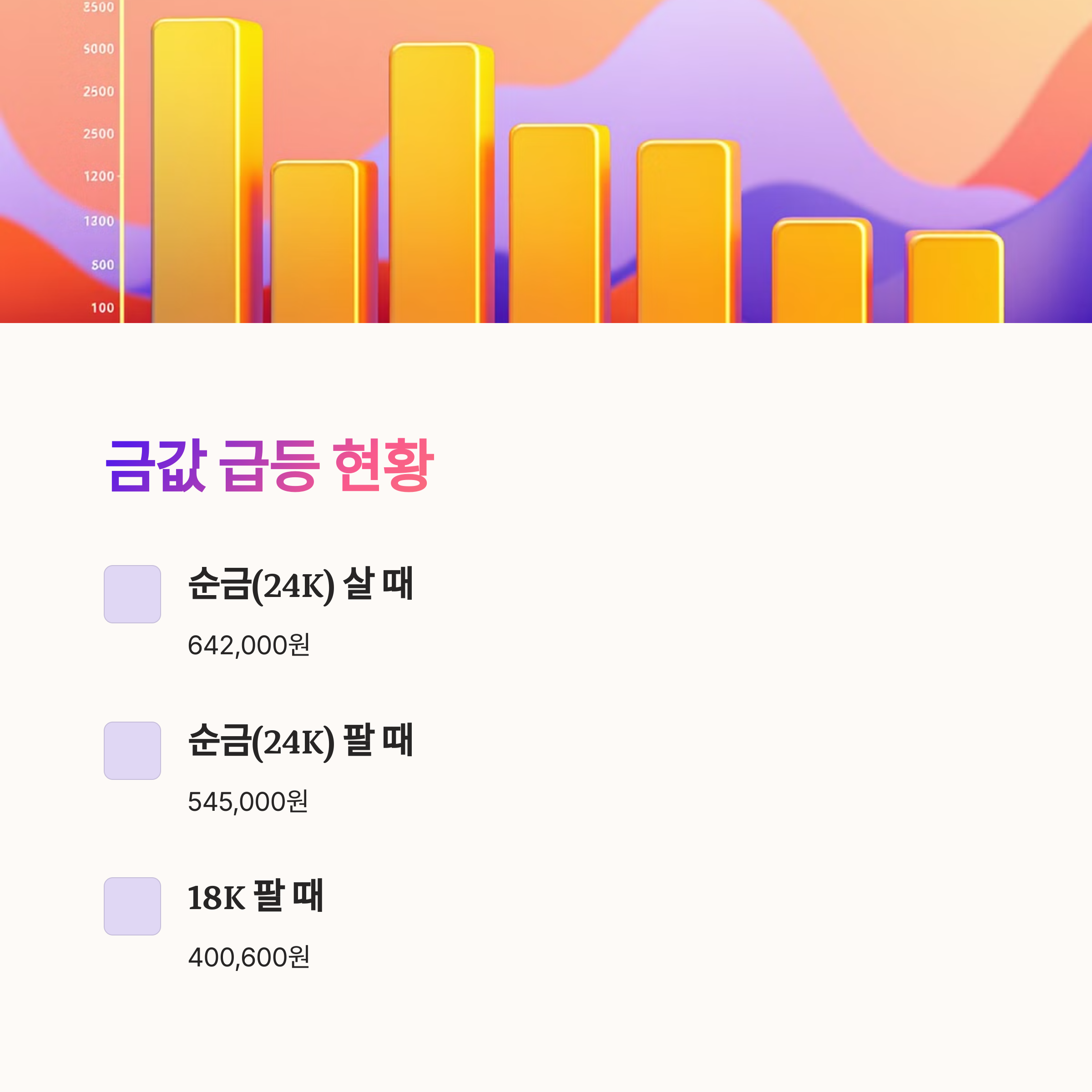 금시세는 지난 3년간 꾸준한 우상향을 보이고 있으며, 특히 올해 들어 상승세가 더욱 가팔라졌습니다. 현재 금 한 돈(3.75g) 가격은 64만 원 수준이며, 세공비까지 고려하면 반지나 목걸이 등으로 제작할 경우 70만 원대가 필요합니다.
