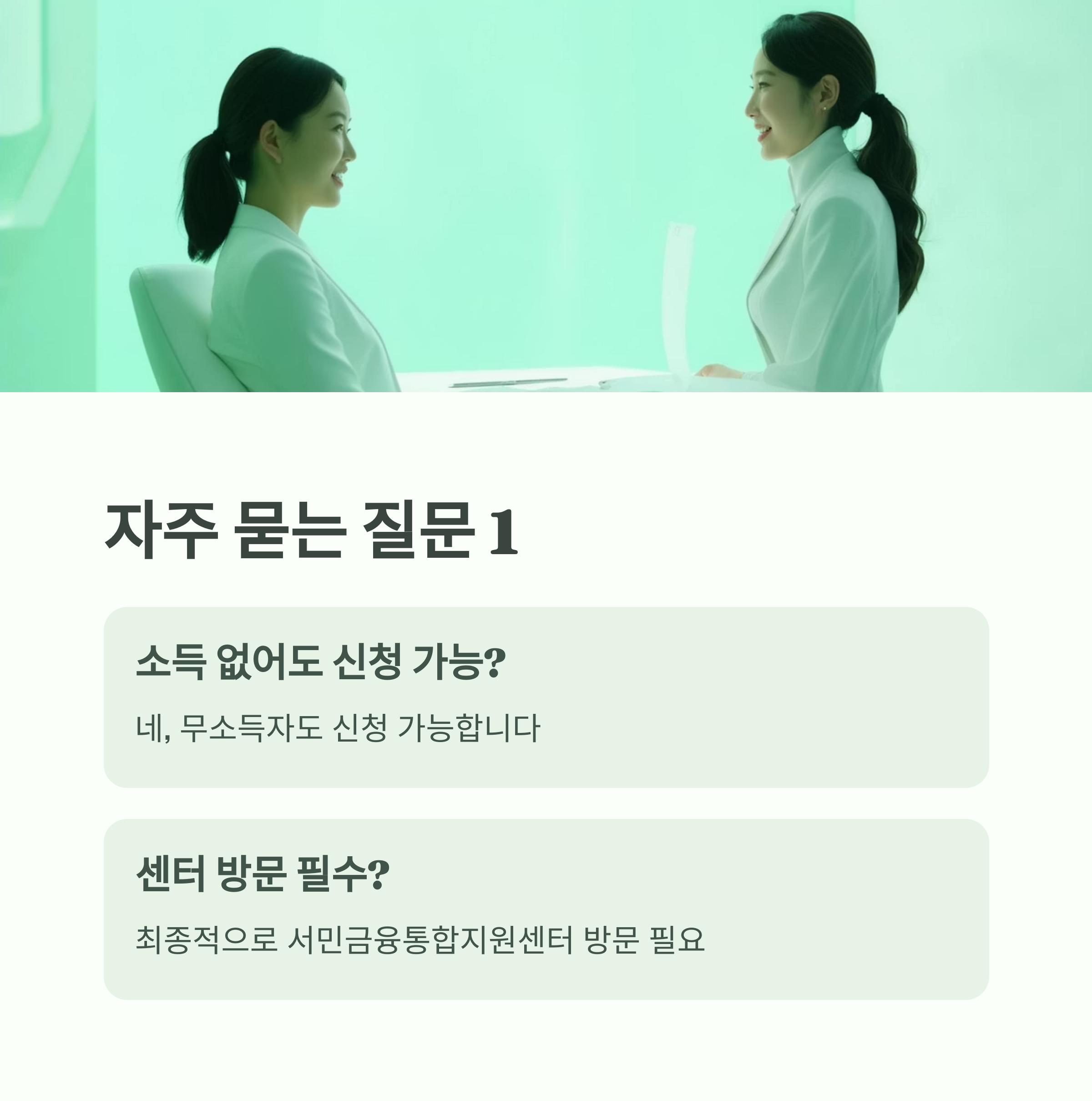 A1. 네, 무소득자도 신청 가능합니다. 다만 신용정보와 보증 가능 여부를 기준으로 심사됩니다.