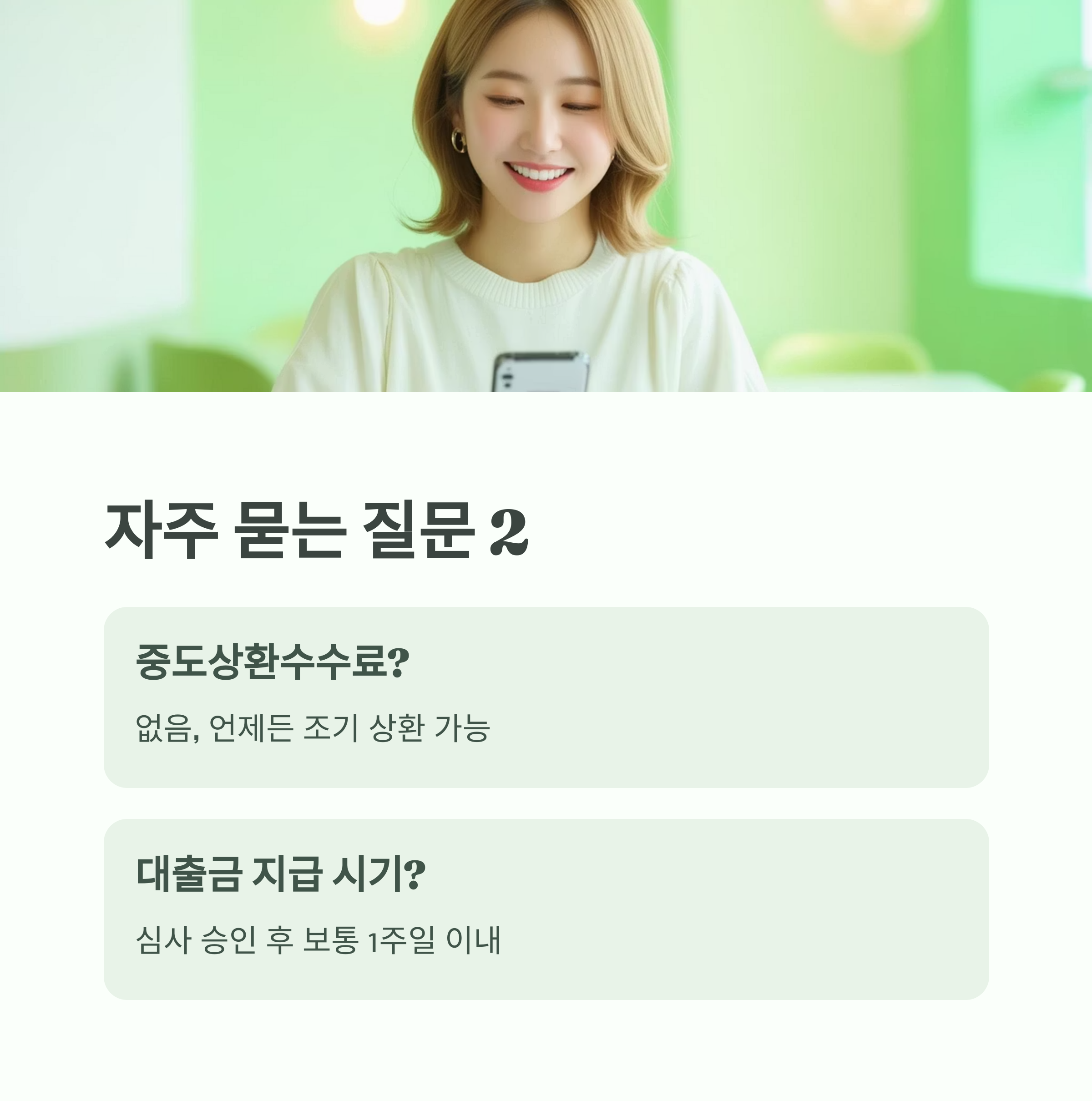A3. 없습니다. 언제든 조기 상환이 가능해 부담 없이 계획할 수 있어요.