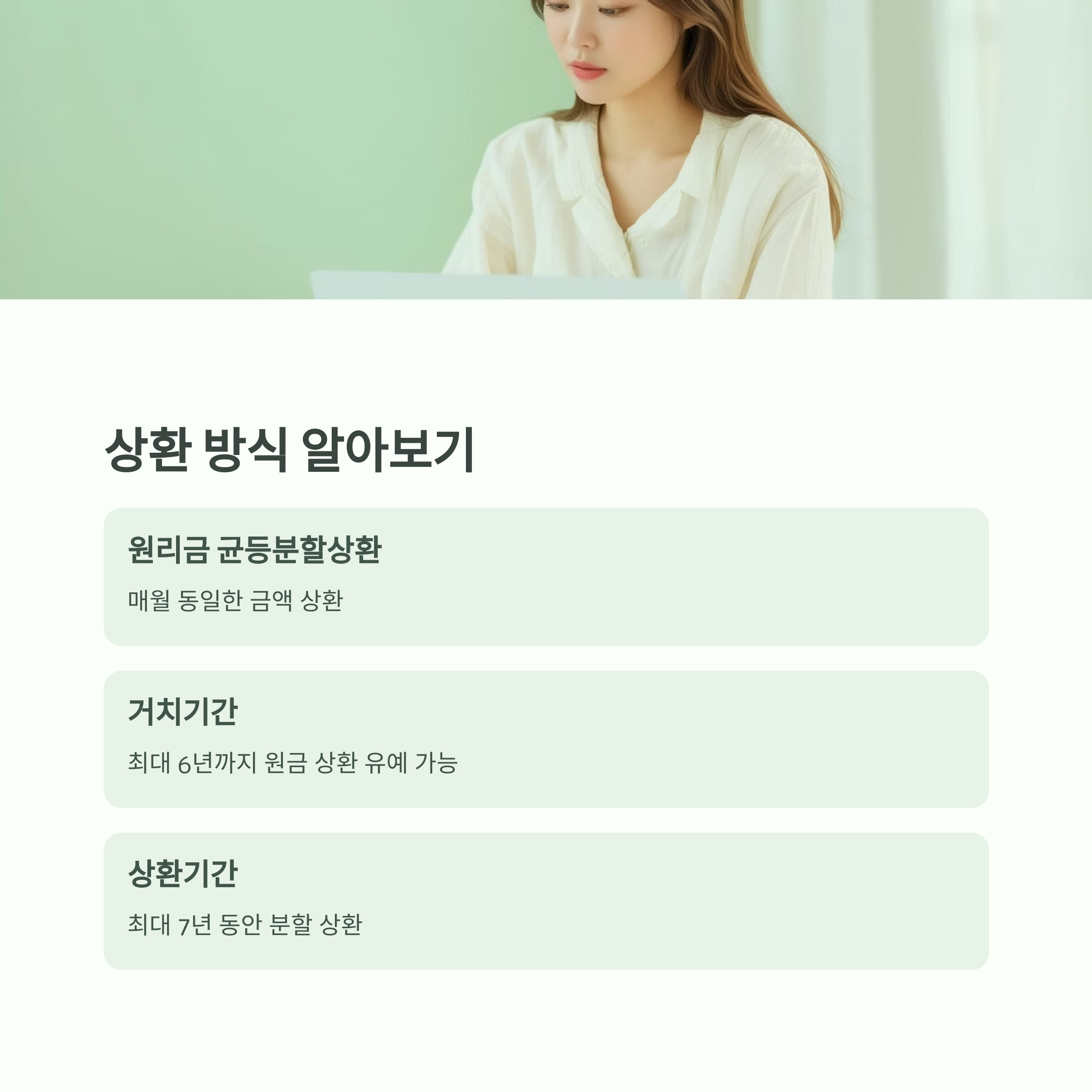- ✔️ 상환 기간: 최대 15년 (거치 최대 6년 + 상환 최대 7년)