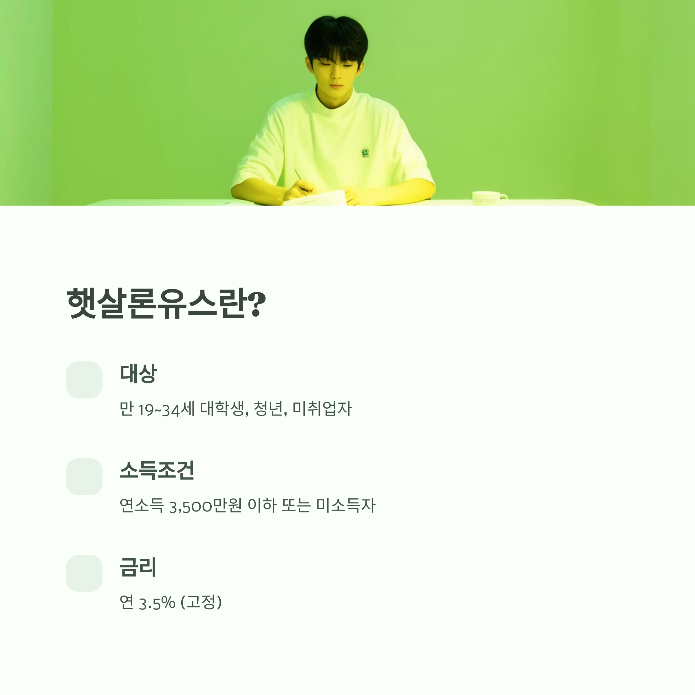 햇살론유스는 만 19세~34세 이하의 대학생, 청년을 대상으로 한 서민금융진흥원 지원 대출상품으로, 신용도가 낮고 소득이 없는 이들도 이용할 수 있는 장점이 있습니다. 특히 등록금, 주거비, 생활비 등 다양한 목적의 자금 활용이 가능하다는 점에서 많은 청년들의 선택을 받고 있어요.