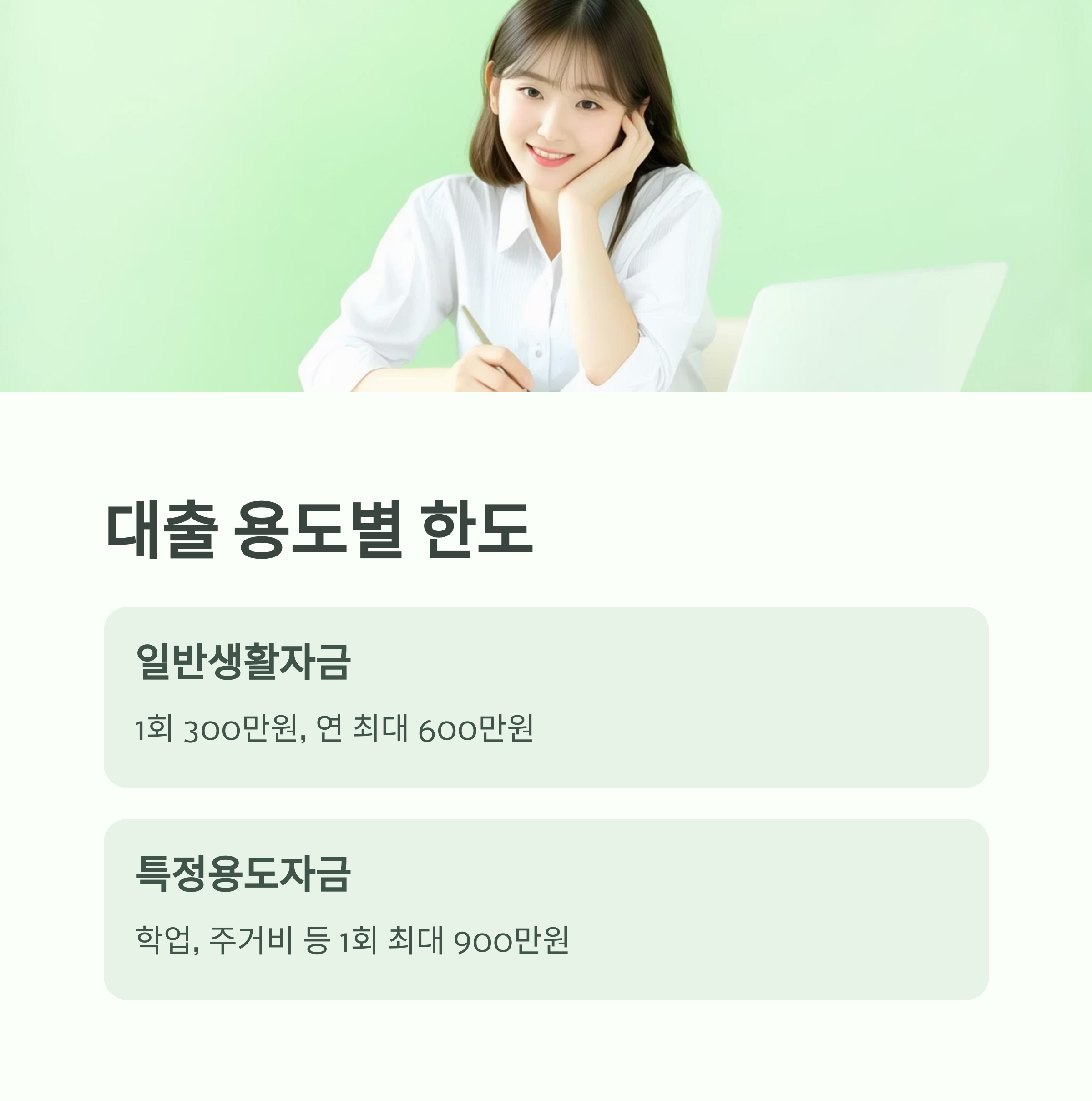 - ✅ 일반생활자금: 1회 300만 원, 연 최대 600만 원