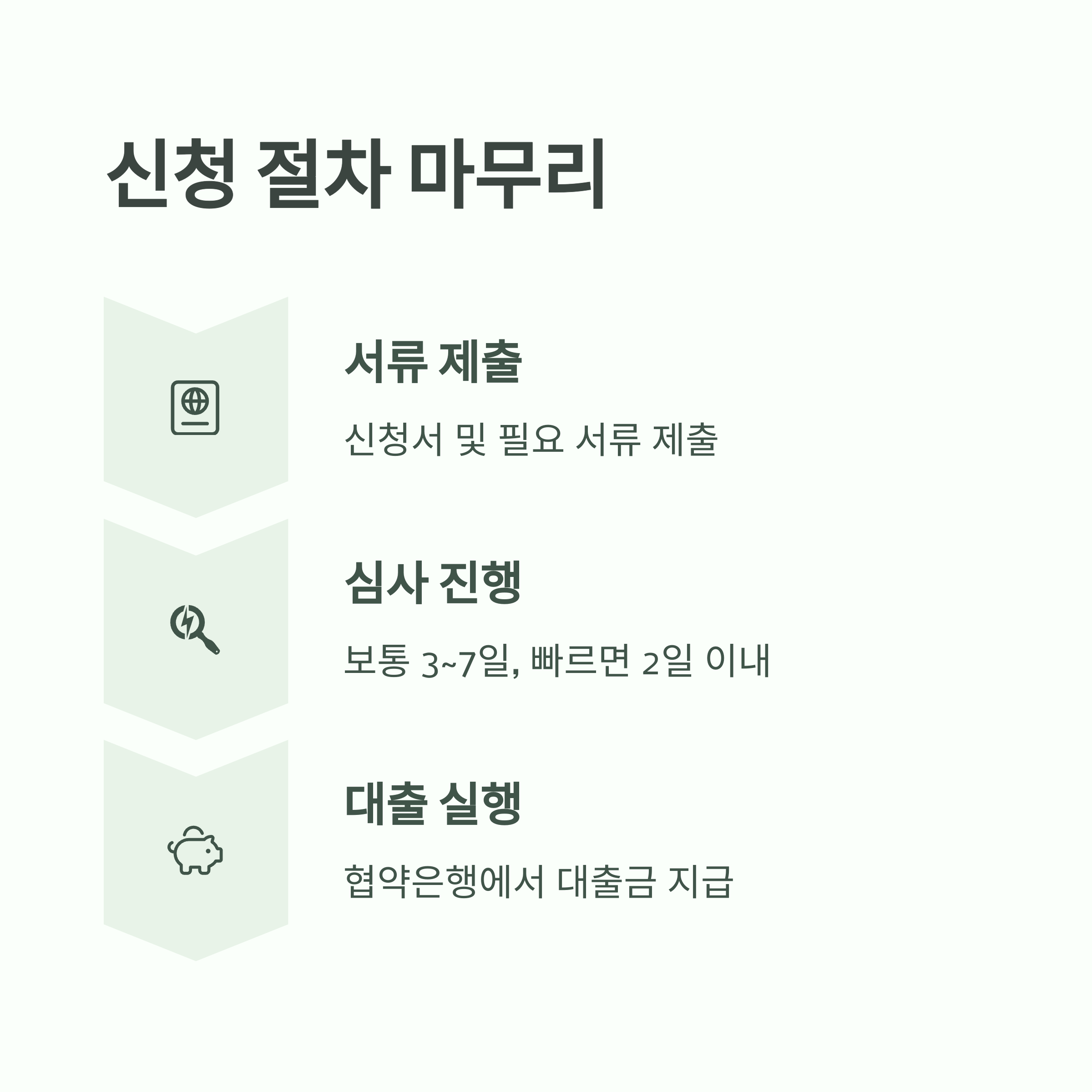 - 심사 기간을 거친 후 협약은행에서 대출 실행