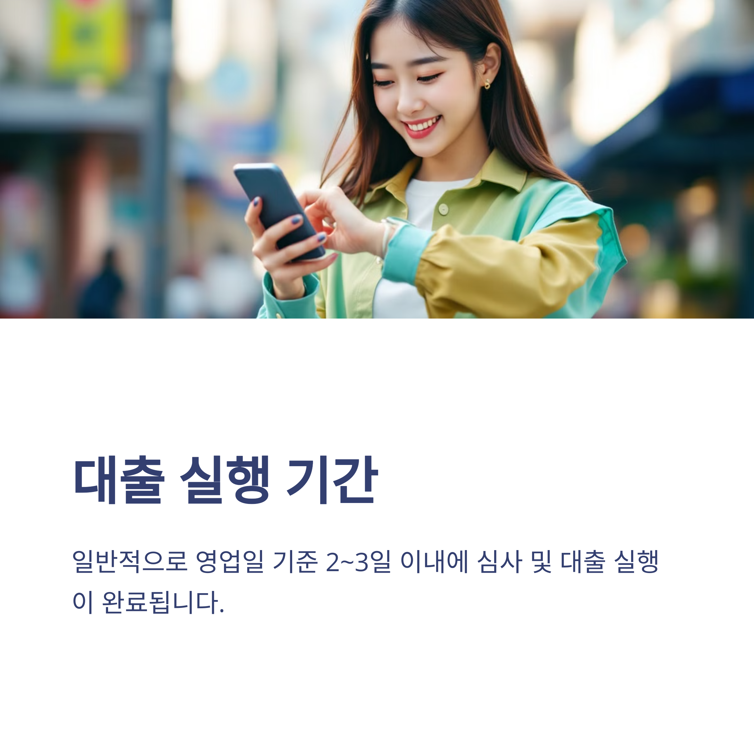 A2. 보통 영업일 기준 2~3일 이내에 심사 및 대출 실행이 완료됩니다.
