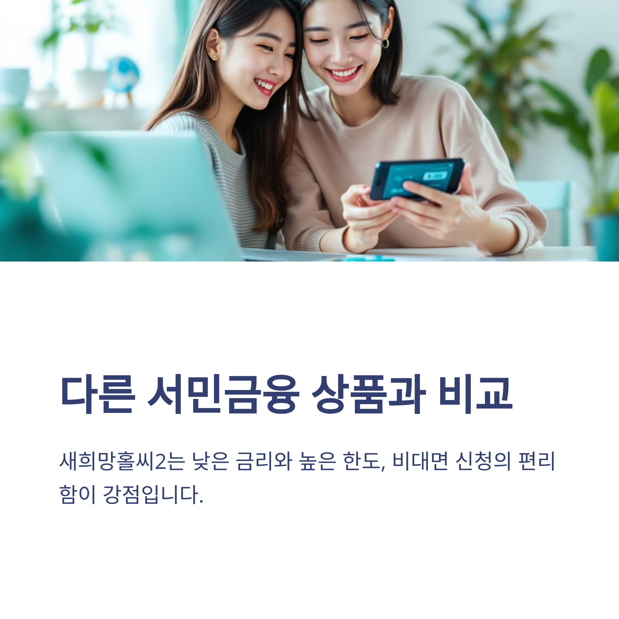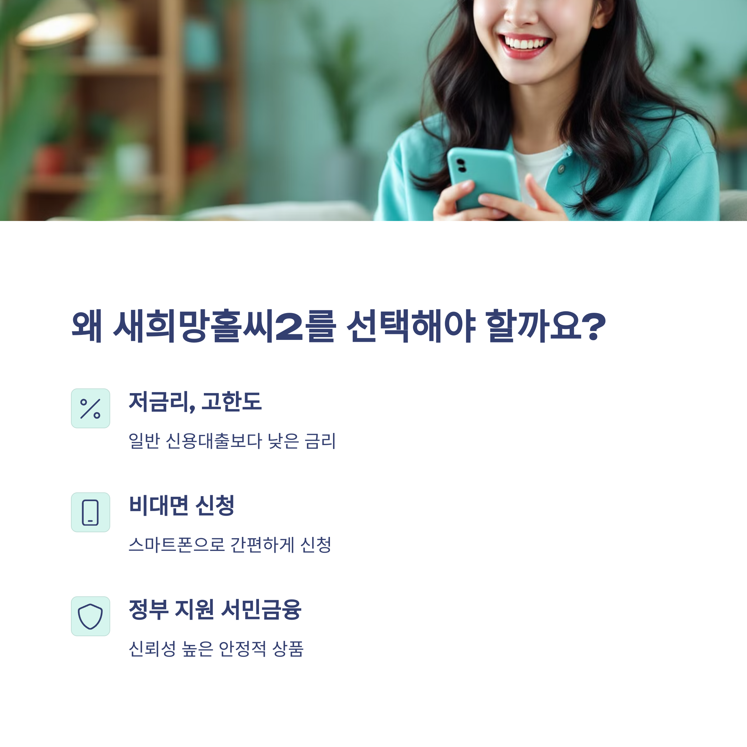 - ✅ 정부 지원 서민금융 상품: 신뢰성이 높고 안정적인 대출 상품